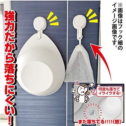 ●色々掛けられる吸盤フック。何度も貼り直し可能で、はがした後も残らない。