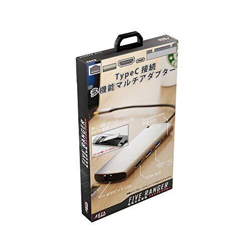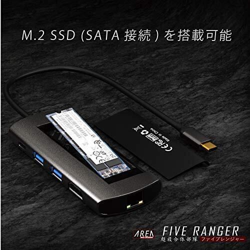 エアリア TypeC接続 多機能マルチアダプタ 5in1 GigaBit LAN USB3.0×2ポート PowerDelivery (60Wまで) M.2SSDケース WindowsとMac両対応 M2COMBO 超複合体部隊 FIVE RANGER (通常パッケージモデル)