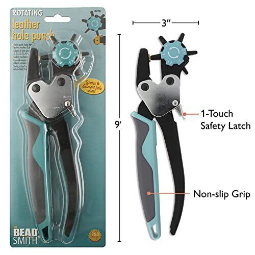 Bead Smithの回転式レザーホールパンチで、レザー、テキスタイル、プラスチックに穴を開けることがかつてないほど簡単になりました。 腕時計やレガリアフラットコルクレザーブレスレットプロジェクトに最適。