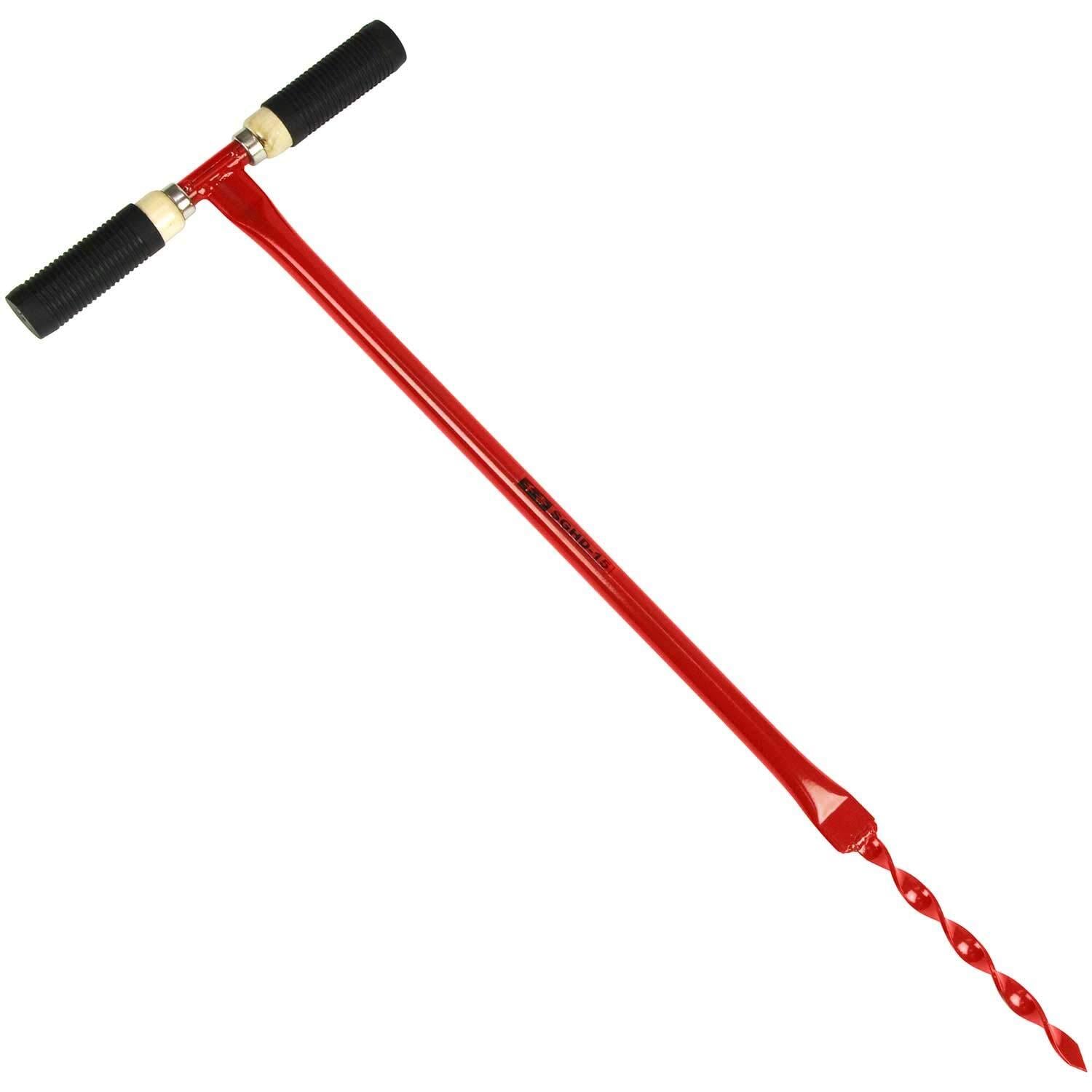 螺旋ドリル方式で、ハンドルを回していくだけで下穴を掘ることが出来る。