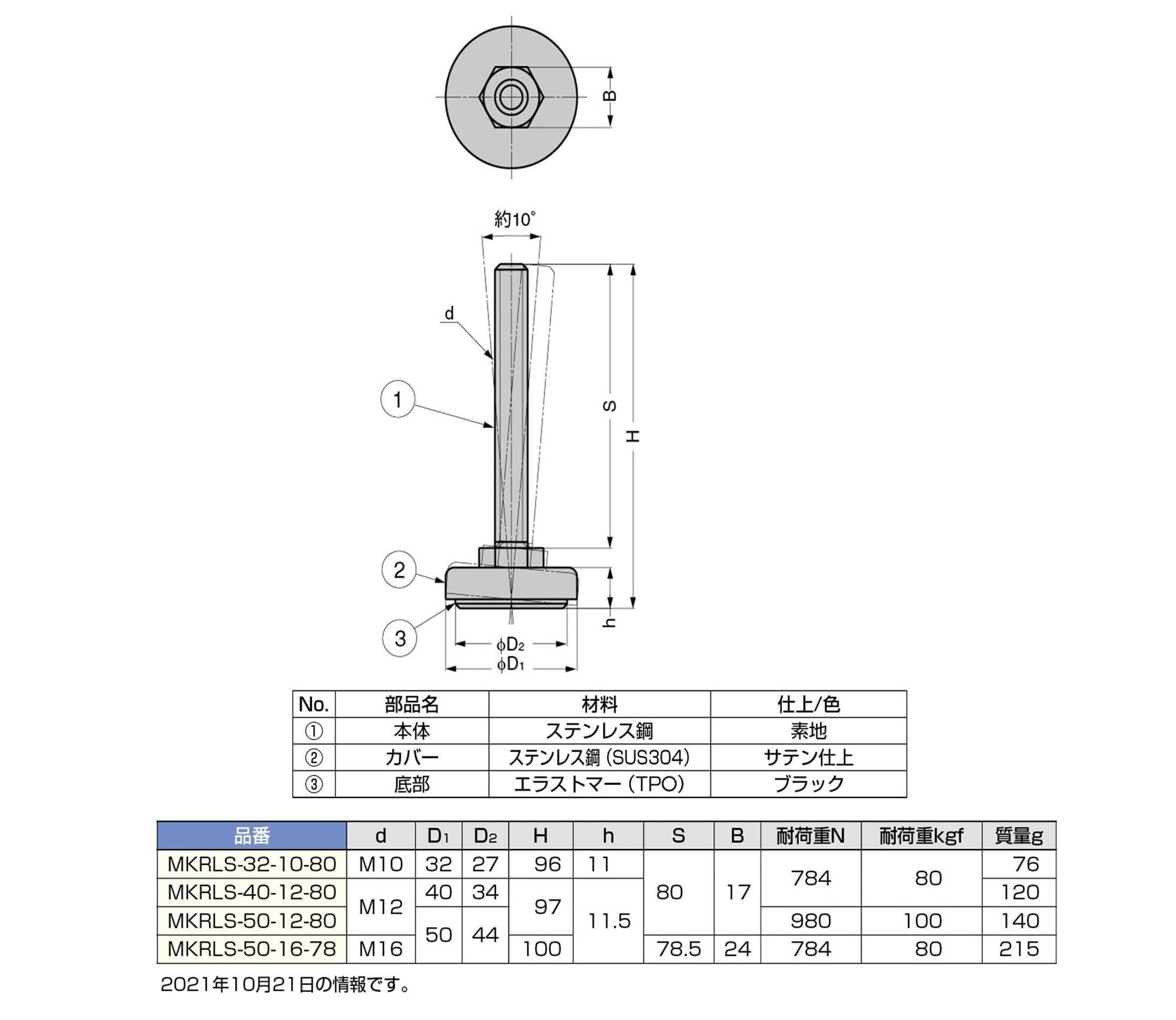 スガツネ工業 ランプ印 ステンレス鋼製アジャスター MKRLS型 首振り機構付 MKRLS-50-12-80