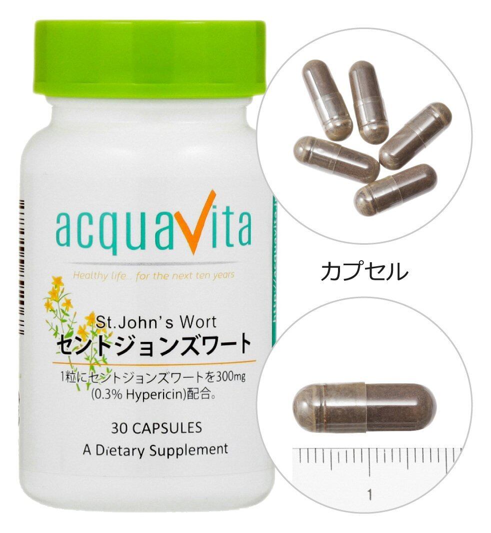 「acquavita(アクアヴィータ) セントジョンズワート」は1粒にセントジョンズワート(ヒペリシン0.3%)300mgを配合。1日1粒目安。