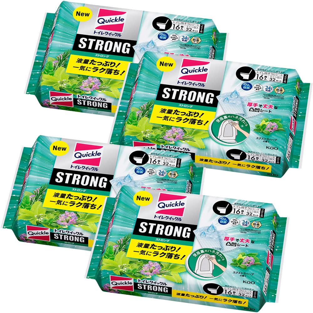 クイックル 【まとめ買い】トイレクイックルストロング トイレシート ワイプ 液量たっぷり! 便座裏のハネ汚れも一気にラク落ち! エクストラハーブの香り 替え16枚×4個