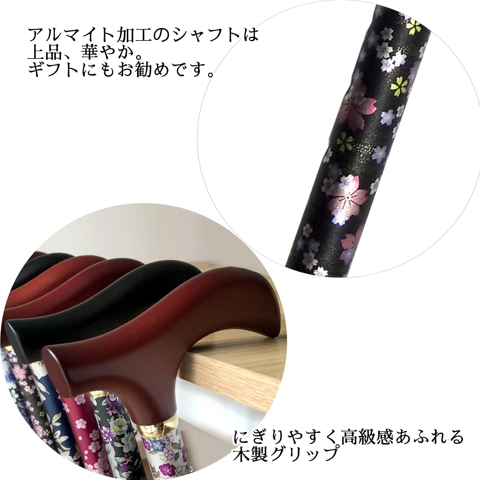 ウェルファン 夢ライフステッキ 高さ調整可 ( 64~90cm) 伸縮 杖 スリムタイプ 花シルバー ストラップ付