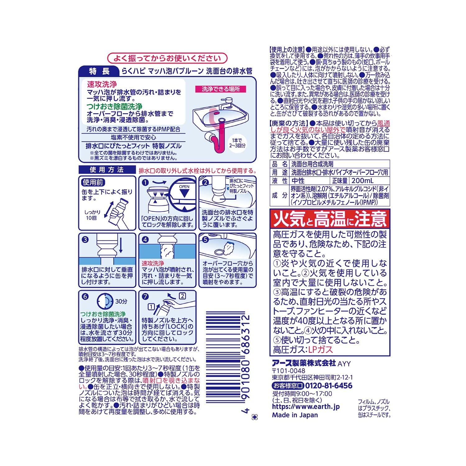 らくハピ マッハ泡バブルーン 洗面台の排水管 洗面台の洗浄剤 [200mL]