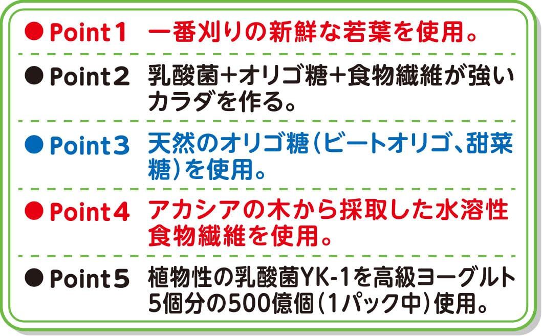 大麦若葉粉末・ビートオリゴ糖、甜菜糖(てんさい糖)・乳酸菌(YK-1)