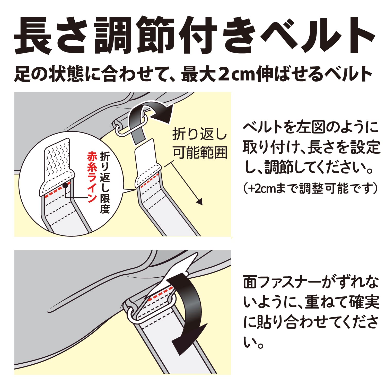甲部分のベルトで最大2cmの長さ調整が可能です。