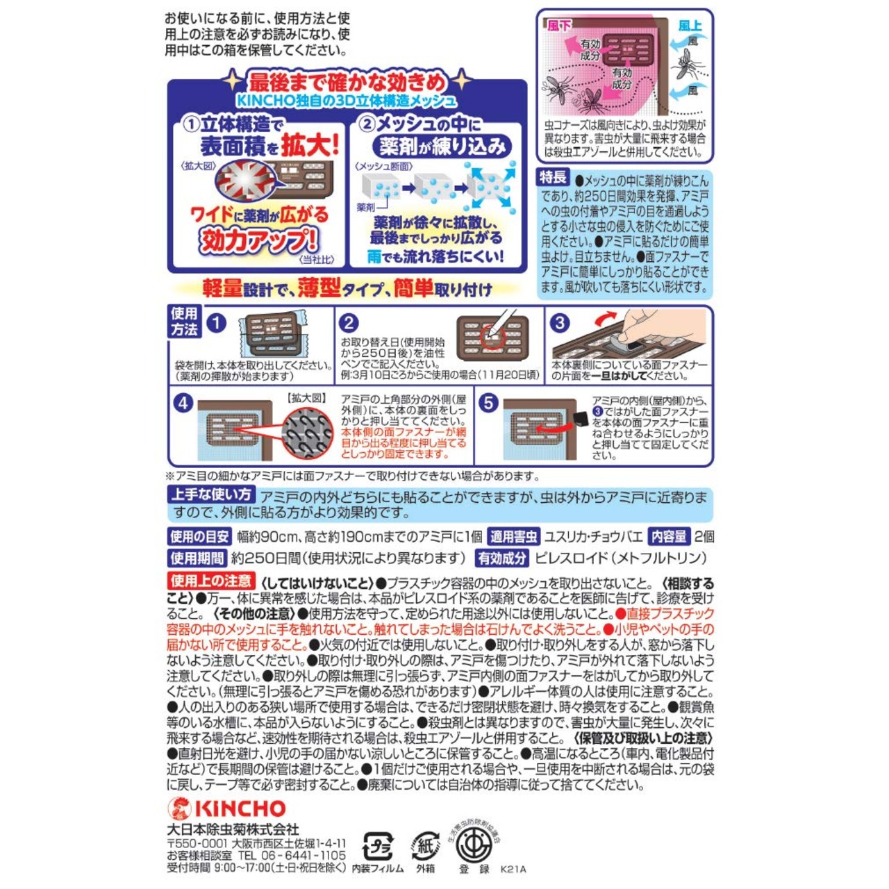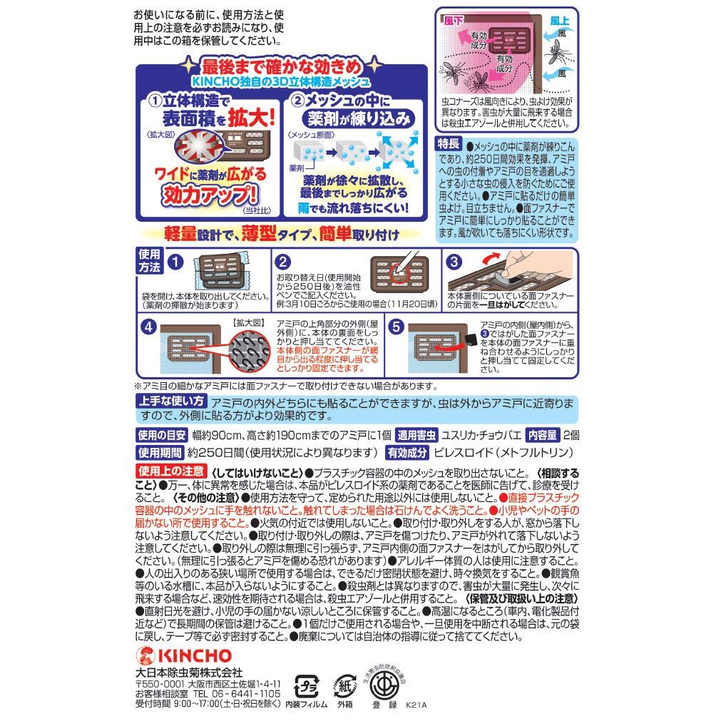 虫コナーズ アミ戸に貼るタイプ 網戸用虫よけ 250日 2個入 無臭