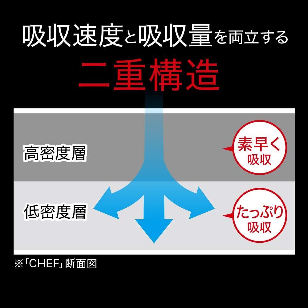 プロが愛用する本格派クッキングペーパー 様々な料理にご使用いただくことで、素材の美味しさを引き出すことができます。 厚手のシートが1枚で水や油をたっぷり吸収。二重構造シートが吸収した水や油をしっかり保存。 高密度層が食材や料理の余分な水や油をすばやく吸収。 ●Lサイズ(390mm×240mm)