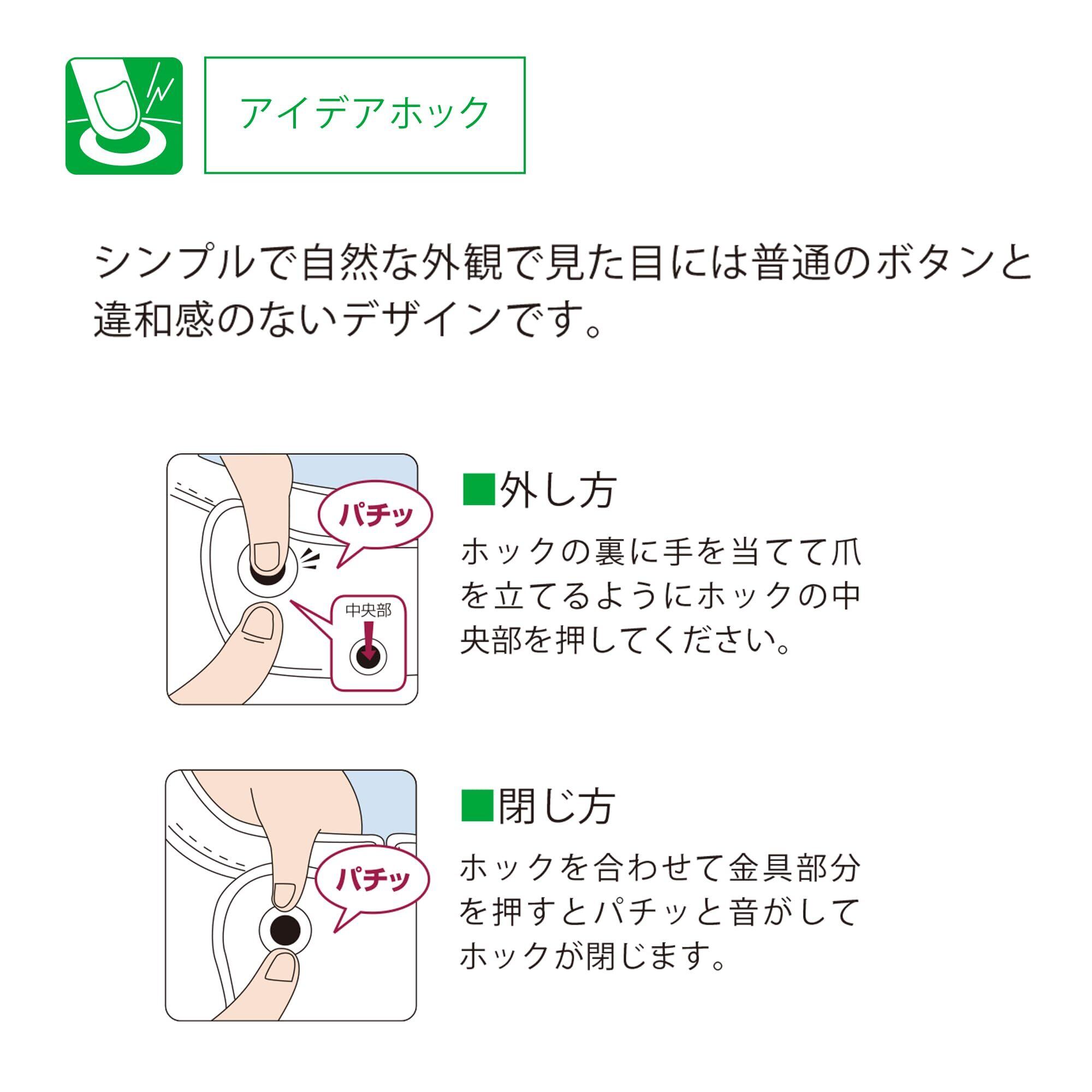 ●ご本人には外しにくい構造のアイデアホック採用。●耐熱性に優れタンブラー乾燥が可能です。●耐熱温度は120℃です。