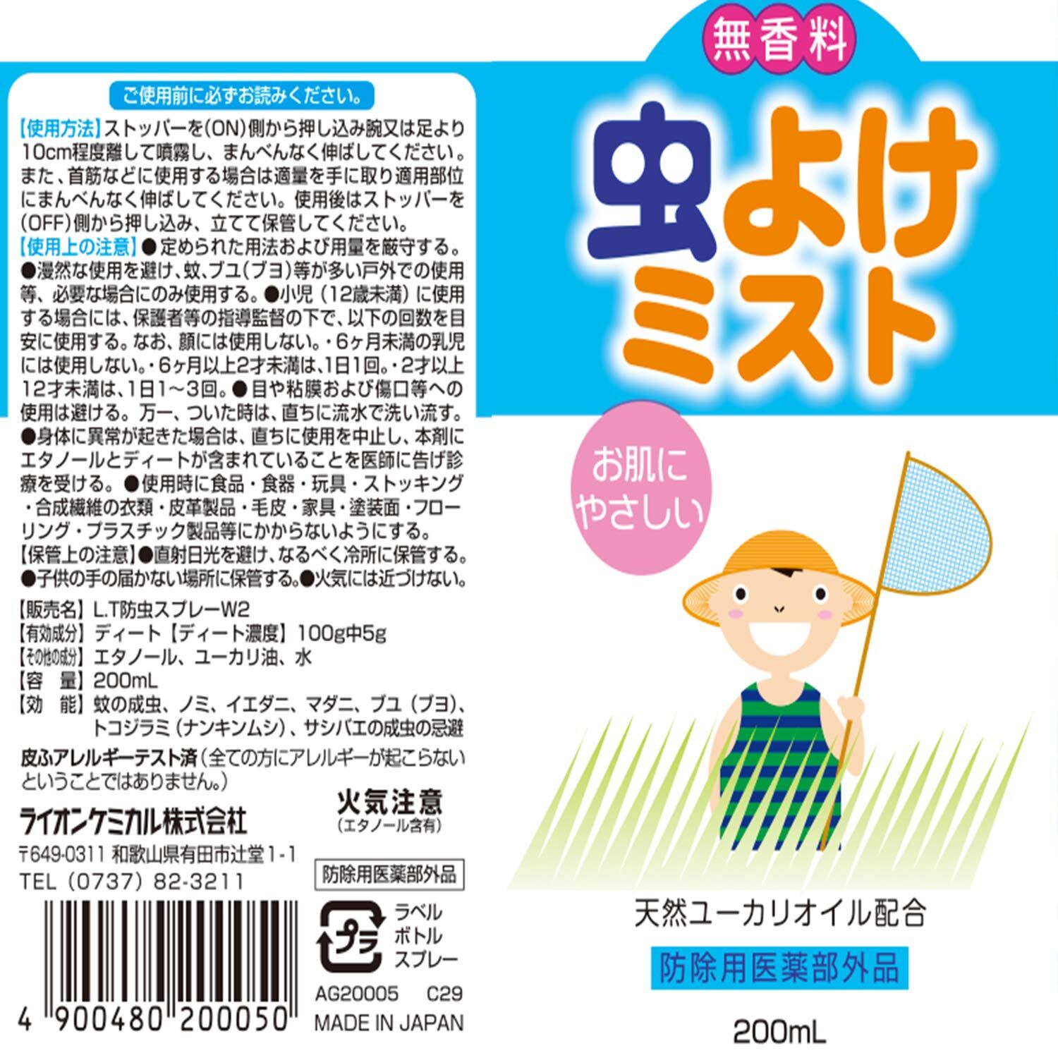お肌にやさしい 虫よけ ミスト 無香料 天然ユーカリオイル配合 200mL 虫除け