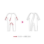 ・フルオープン式のファスナーや股ファスナーを前面に配置することにより、着替えや清拭・おむつ交換がしやすくなります。