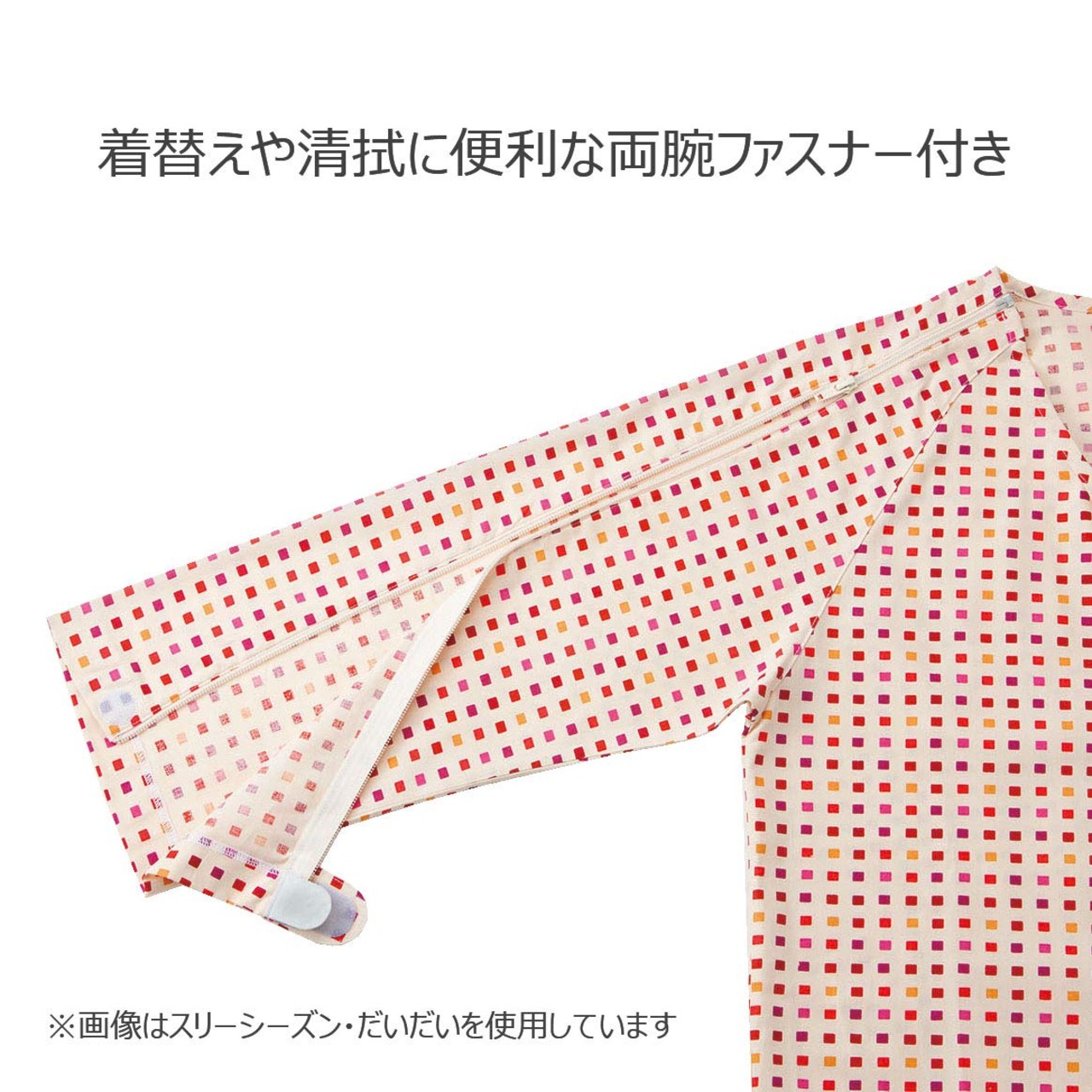 フルオープン式のファスナーや股ファスナーを前面に配置することにより、着替えや清拭・おむつ交換がしやすくなります