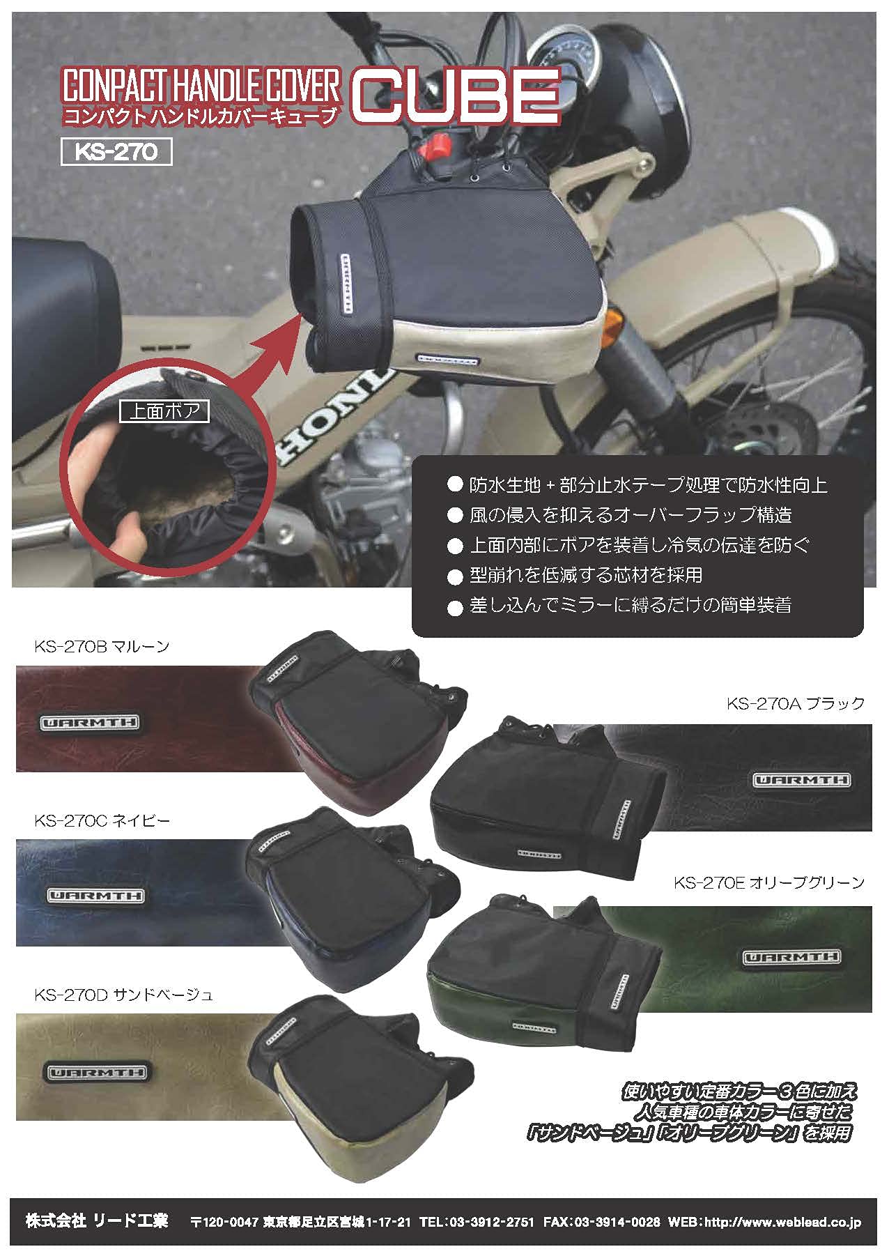 リード工業(LEAD) バイク用 コンパクトハンドルカバー キューブ 簡単装着 防水 マルーン フリーサイズ KS270B