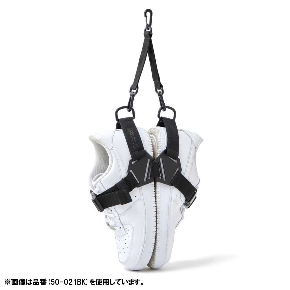 ●素材:ポリエステル●カラー:ホワイト●シューズを持ち運ぶのに便利なハーネスベルト式のシューズバッグのニューカラー。●足の甲部分のベルトでサイズ調節が可能です。かかと部分からはしるテープで、肩掛け・斜め掛けなどして持ち運びが可能です。●対応サイズ目安:24-29cm※シューズの素材・形状で異なる為、あくまで目安になります。
