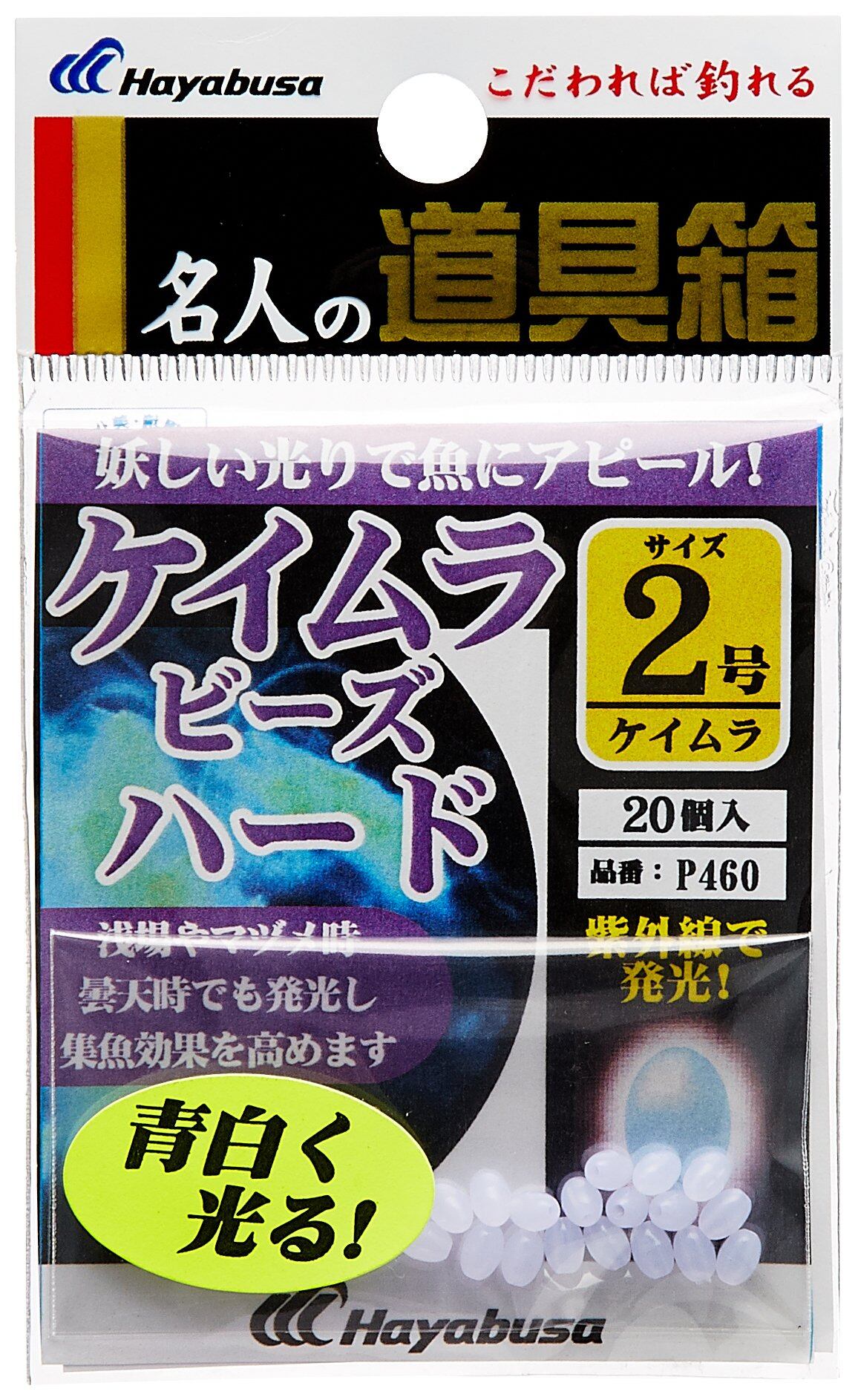 ◎P460 紫外線発光ケイムラ玉ハード ◎P461 紫外線発光ケイムラ玉ソフト ・カテゴリー カスタムパーツ △発光玉・ビーズ 紫外線によって青白く光り、朝夕まずめやローライトな日中など妖しい光で魚を誘います。 ●シリーズ名 発光玉 品番 P460、P461 製品形態 パーツ