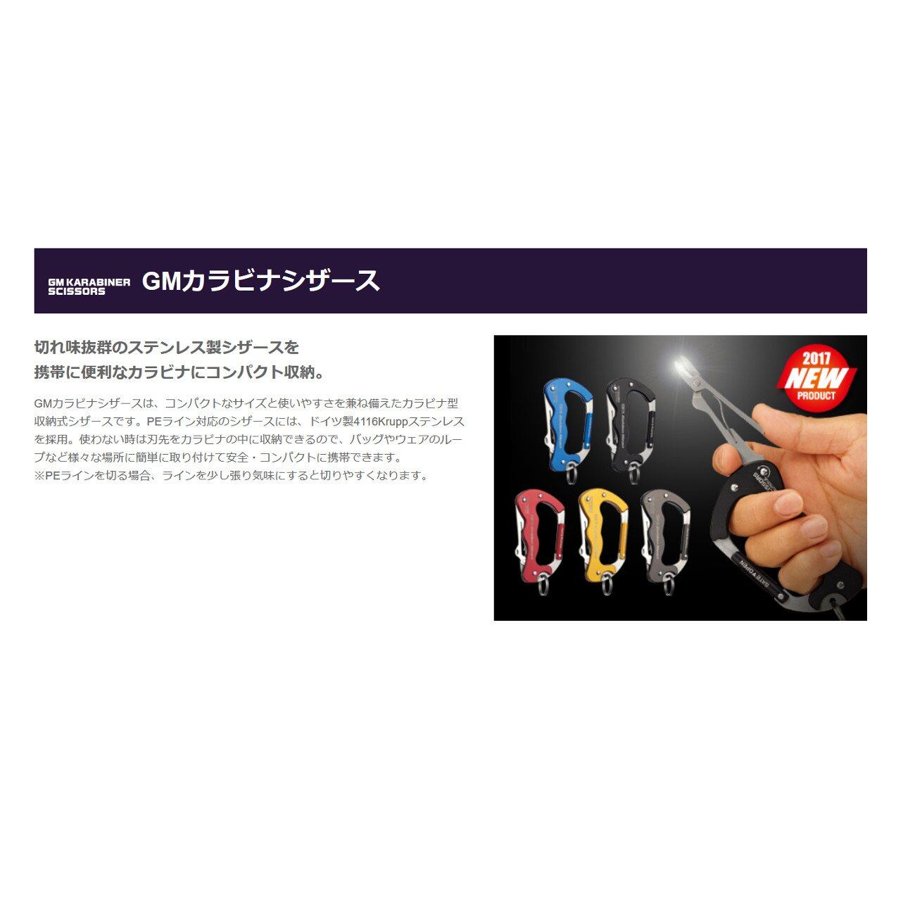 GoldenMean/ゴールデンミーンGM KARABINER SCISSORS/GMカラビナシザース◆サイズ:シザース収納時=H90×W52mm/シザース使用時=H155mm◆自量:63g◆素材:カラビナ=アルミ+ステンレス シザース=4116Kruppステンレス◆付属品:スプリットリング切れ味抜群のステンレス製シザースを携帯に便利なカラビナにコンパクト収納。GMカラビナシザースは、コンパクトなサイズと使いやすさを兼ね備えたカラビナ型収納式シザースです。PEライン対応のシザースには、ドイツ製4116Kruppステンレスを採用。使わない時は刃先をカラビナの中に収納できるので、バッグやウェアのループな様々な場所に簡単に取り付けて安全・コンパクトに携帯できます。※PEラインを切る場合、ラインを少し張り気味にすると切りやすくなります。