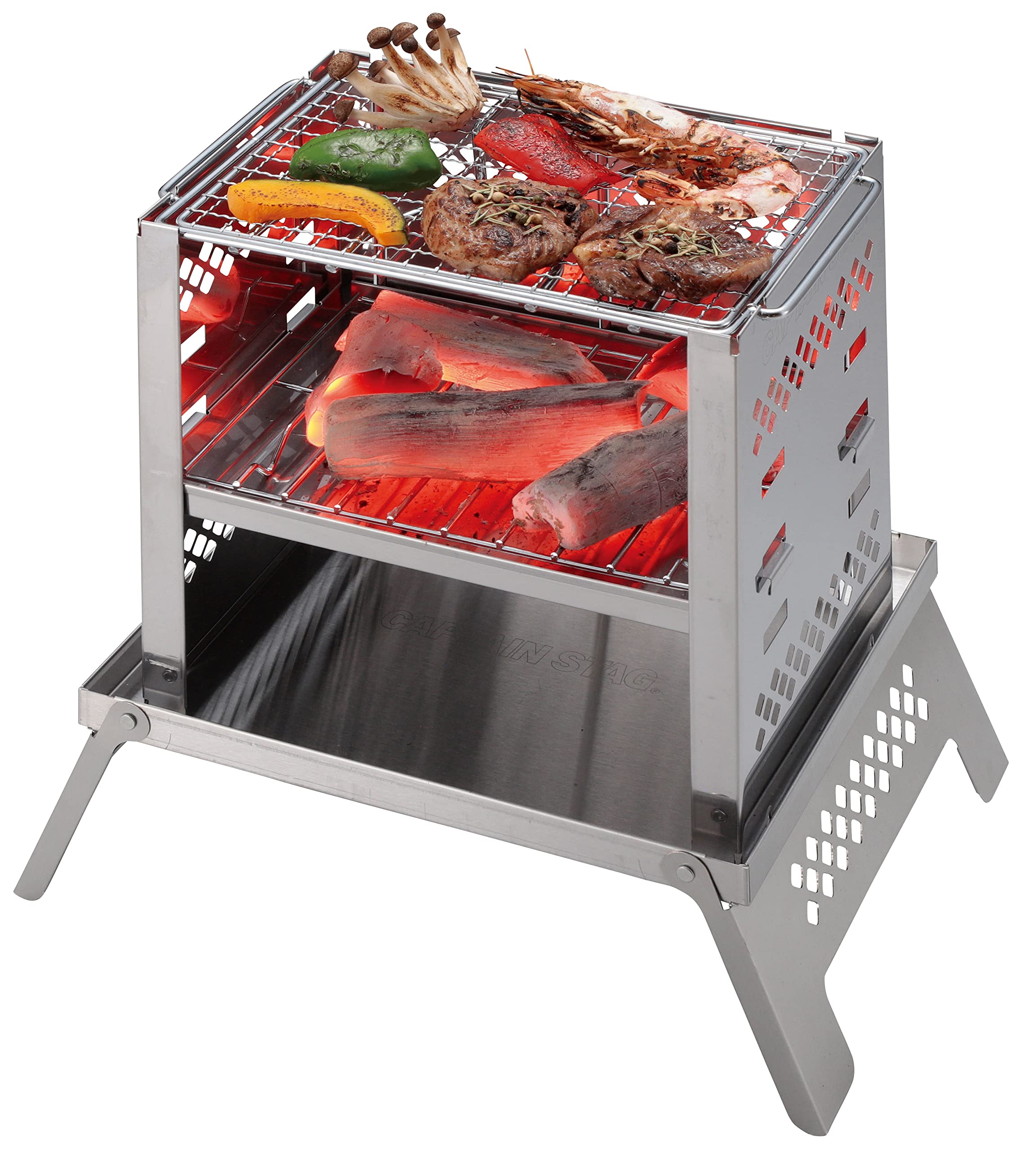 キャプテンスタッグ(CAPTAIN STAG) バーベキューコンロ 焚火台 1台3役 折りたたみ カマド スマートグリル B5型 バッグ付 3段階調節可能 UG-42