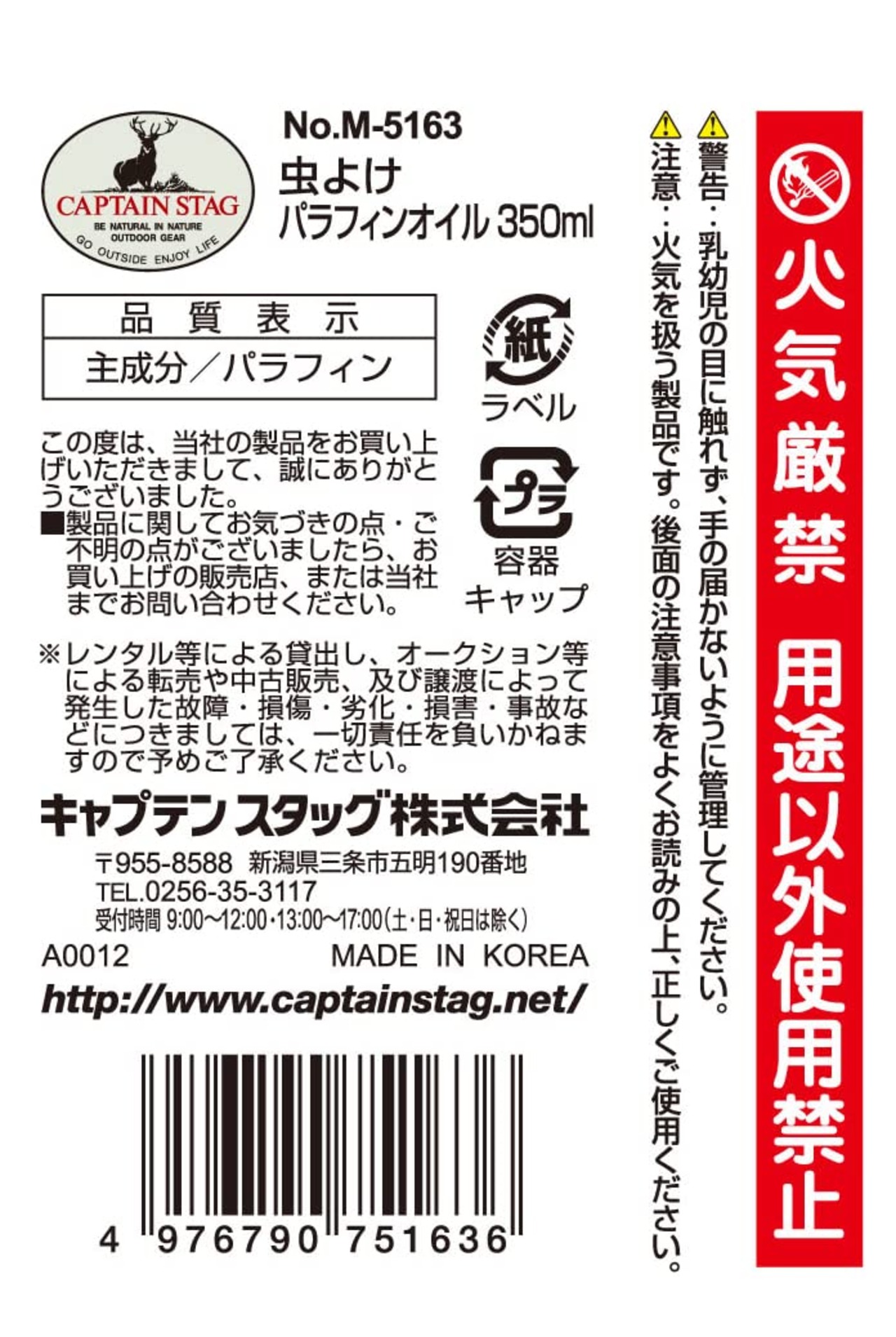 キャプテンスタッグ(CAPTAIN STAG) アウトドア 燃料 ランタン用 パラフィンオイル 350ml/500ml M-5163/M-5164/M-9641/M-9642