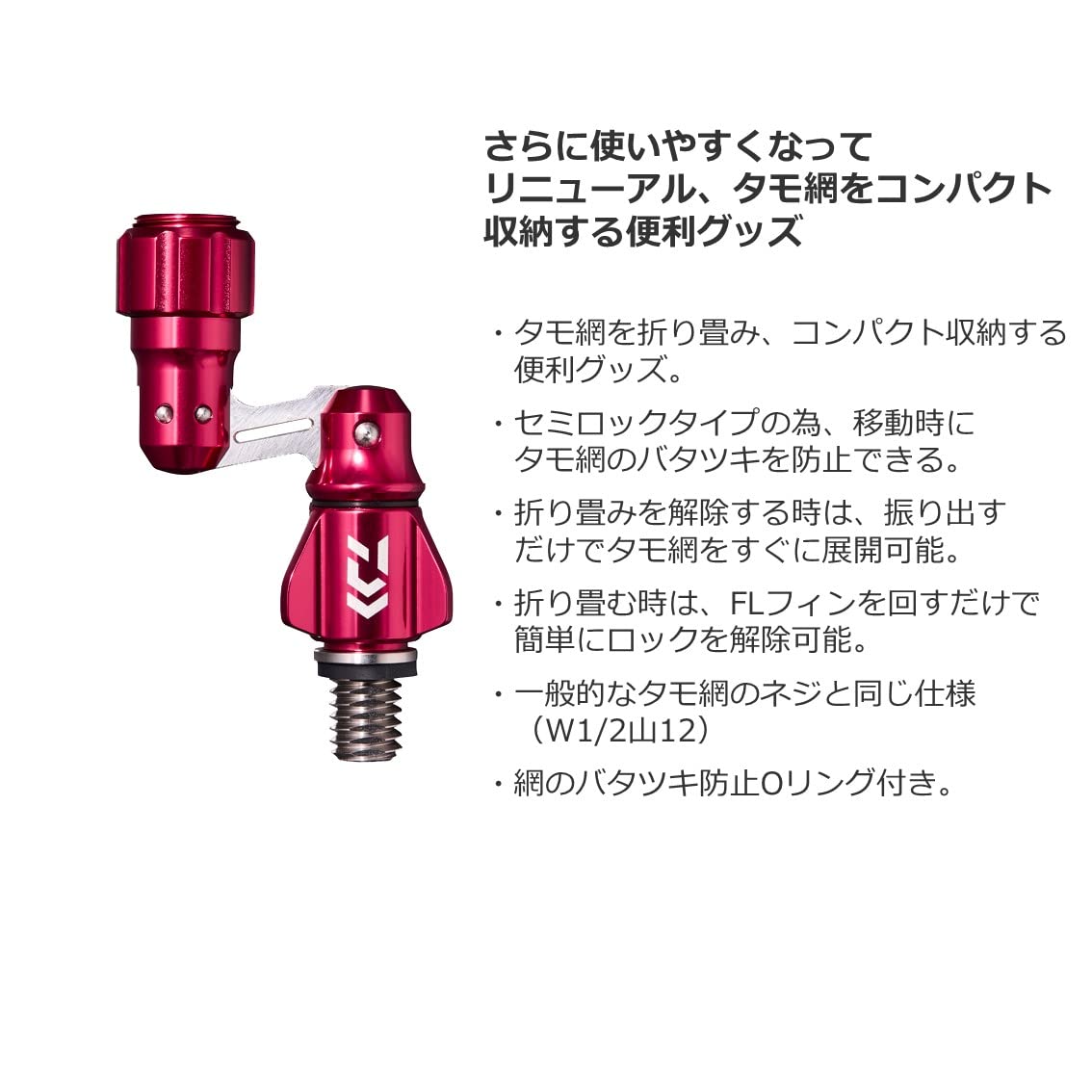 さらに使いやすくなってリニューアル、タモ網をコンパクト収納する便利グッズ