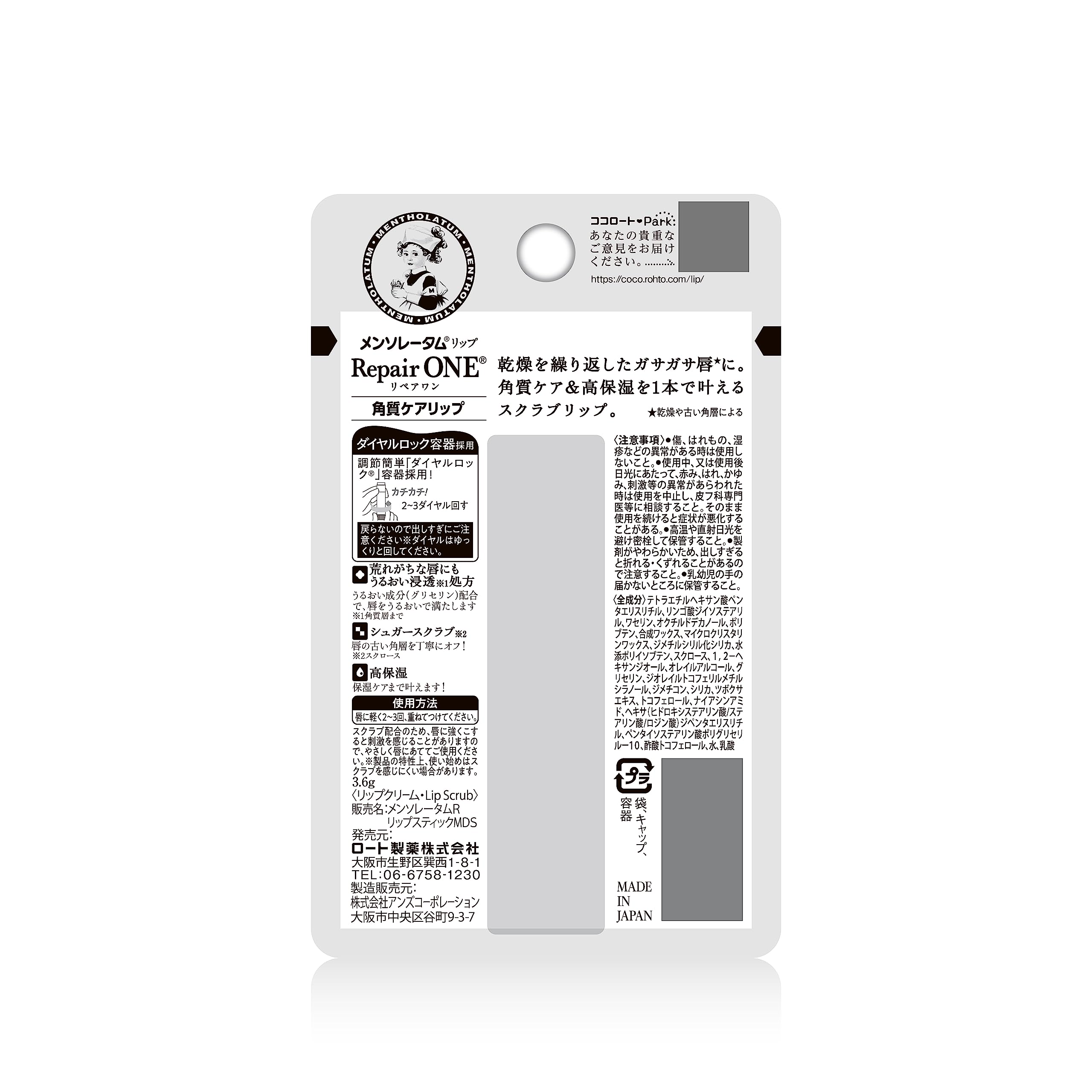 メンソレータムリップ リペアワン 角質ケアリップ 3.6g (ナイアシンアミド ビタミンE誘導体 CICAエキス ワセリン 集中スクラブケア 保湿)