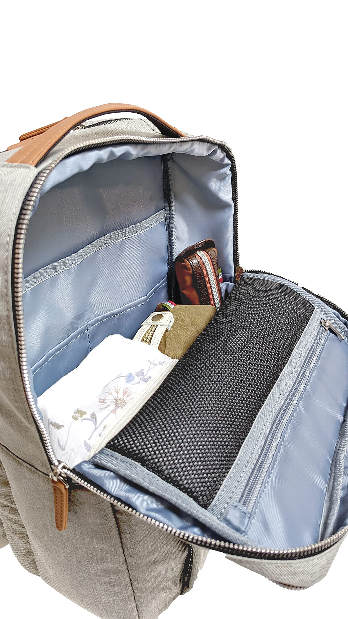 ●メイン気室には豊富なポケット機能を搭載。(ファスナーポケット×1、オープンポケット×3、クッション材入りオープンポケット×2)