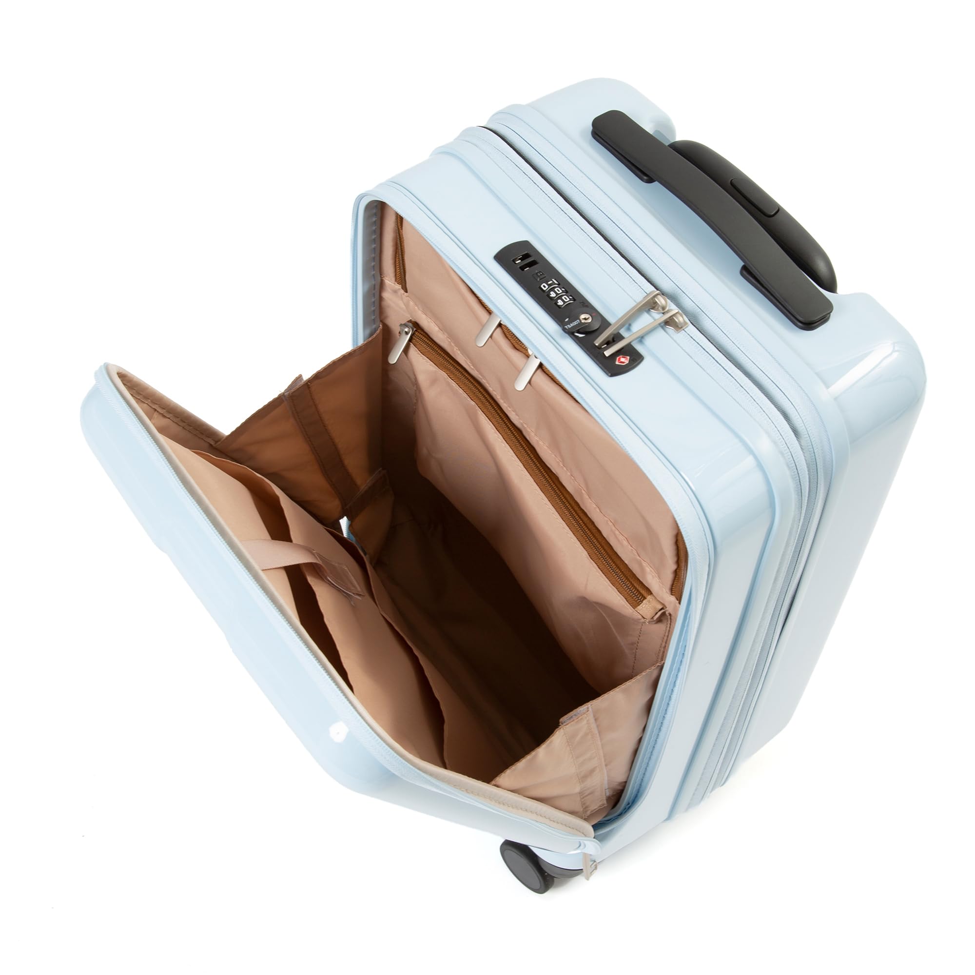 キャスターストッパー、フロントポケット、エキスパンド(拡張)の3機能が搭載された贅沢なスーツケース。