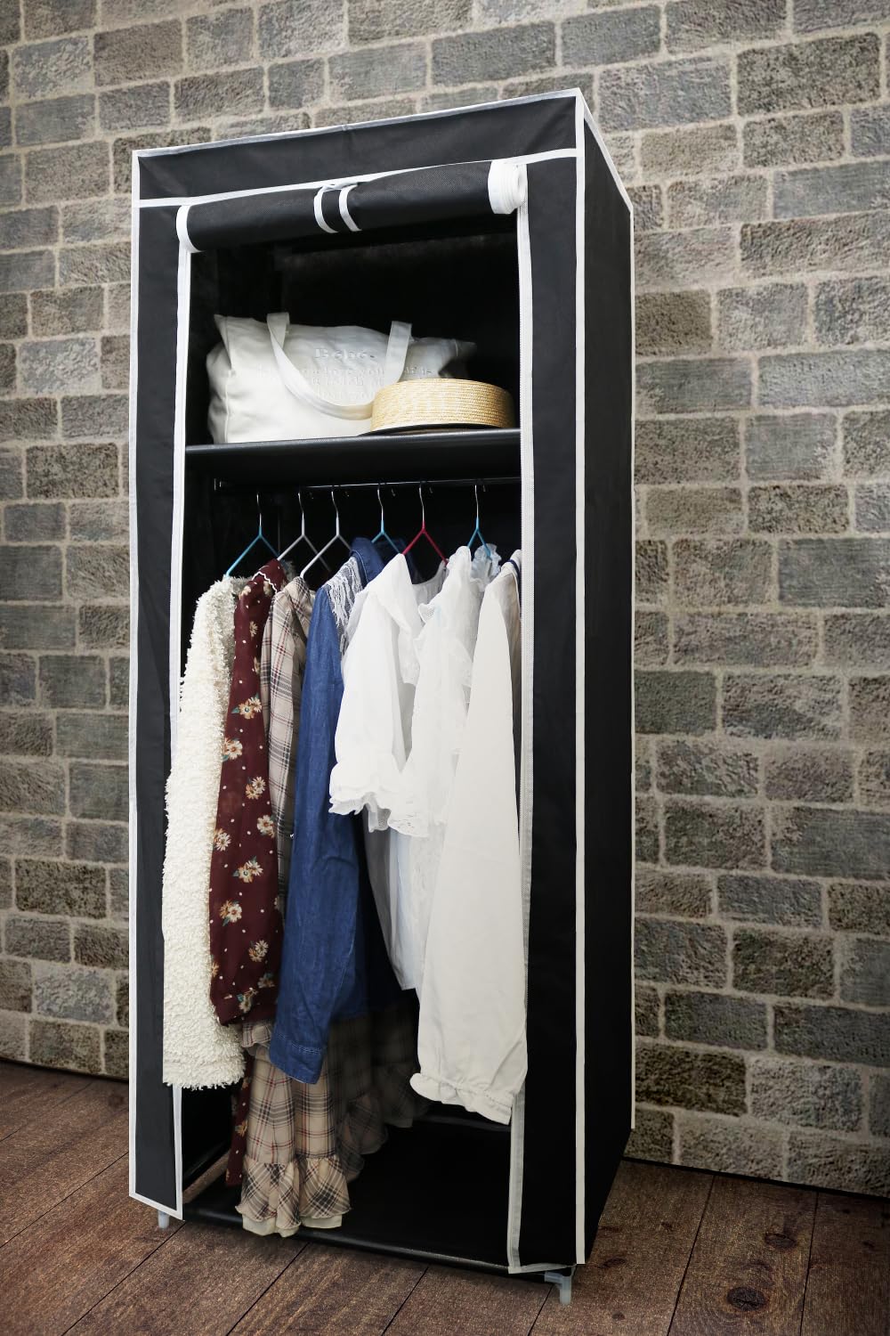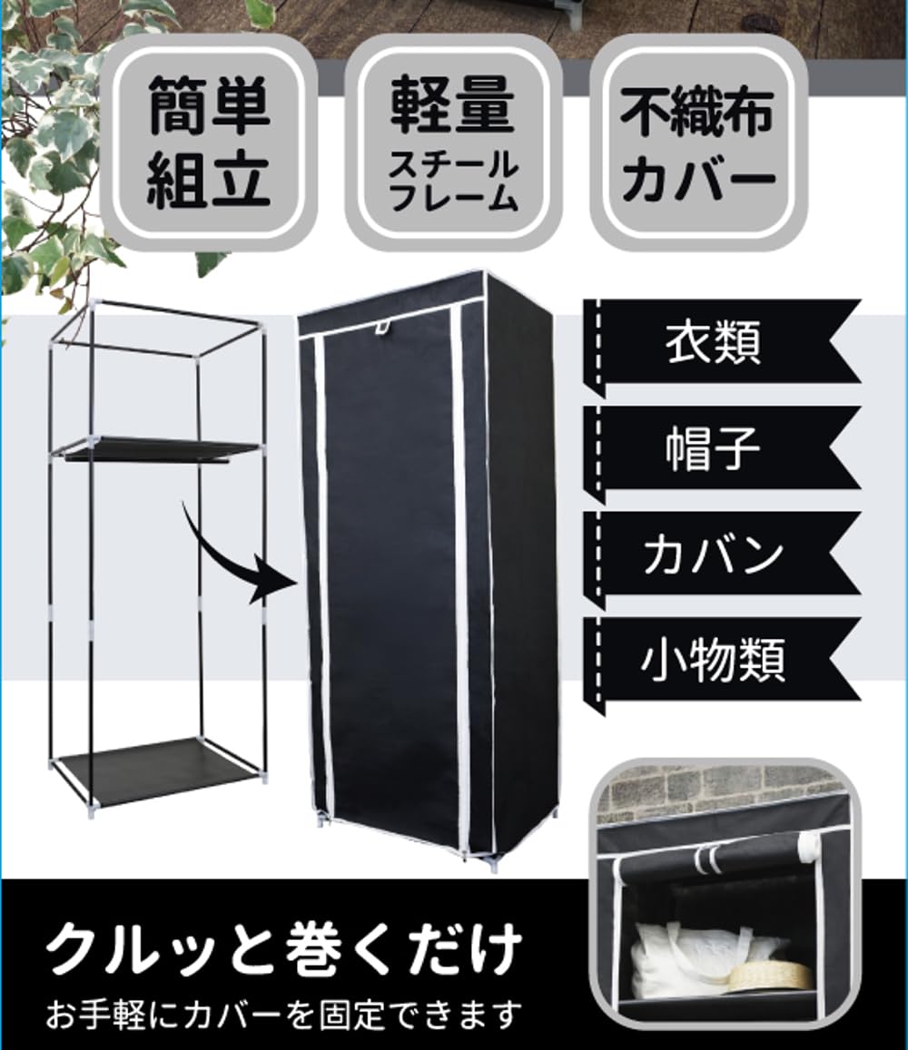 トレードワン ハンガーラック 約H148×W60×D43cm 不織布カバー付き ほこりよけ スチール 組み立て式 簡単 軽量 シンプル 収納 ブラック 30748