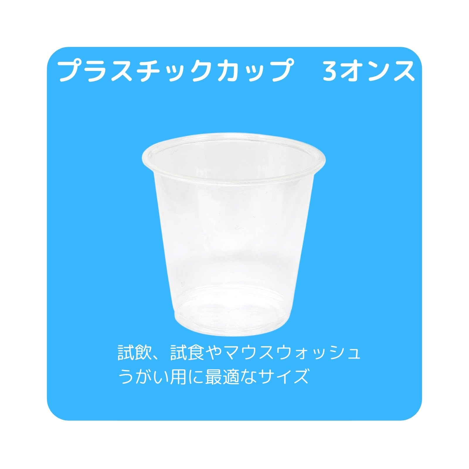 透明なプラスチックカップ(プラスチックコップ)です。展示会やイベントでのコールドドリンクの試飲など、使い捨てで扱いやすいため、アウトドアのデザート容器などにもおすすめです。