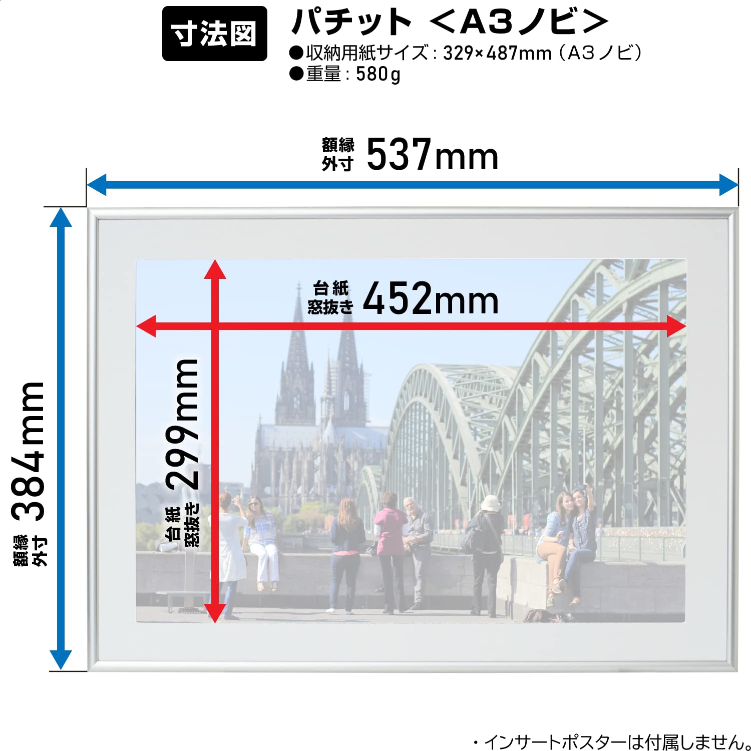 ケンコー(Kenko) 額縁 パチット A3ノビ 0.4mm極薄PETシート採用 アルミフレーム 日本製 APT-A3N