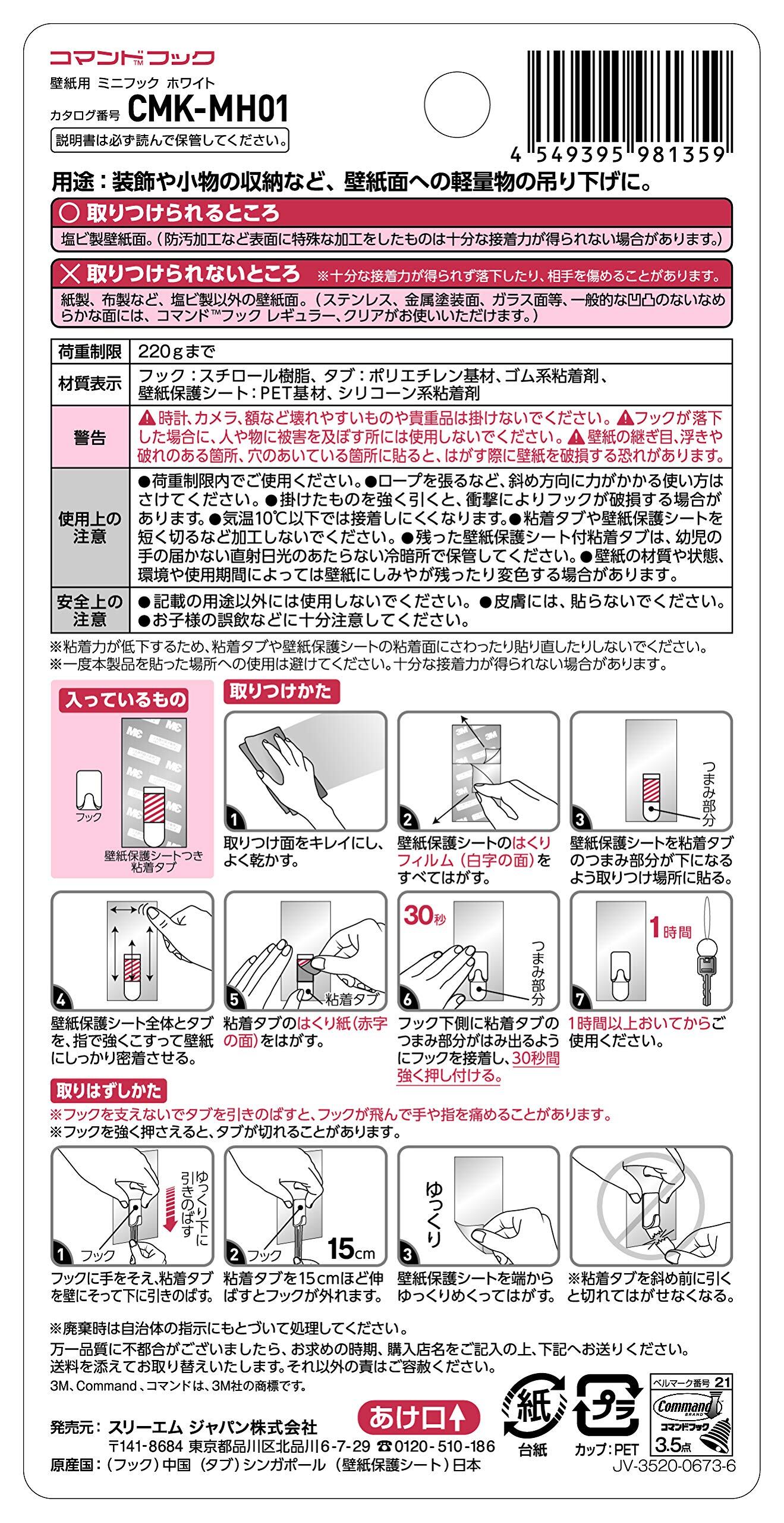 3M 壁紙用 フック はがせる 粘着 コマンド ミニ グレー CMK-MH03