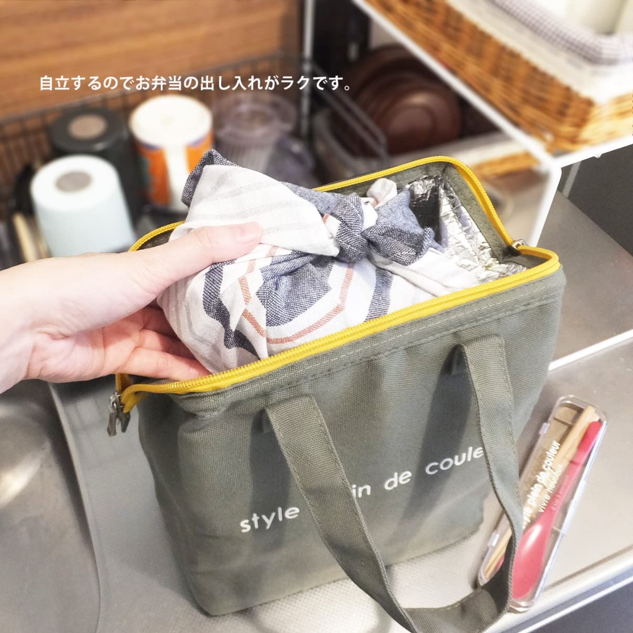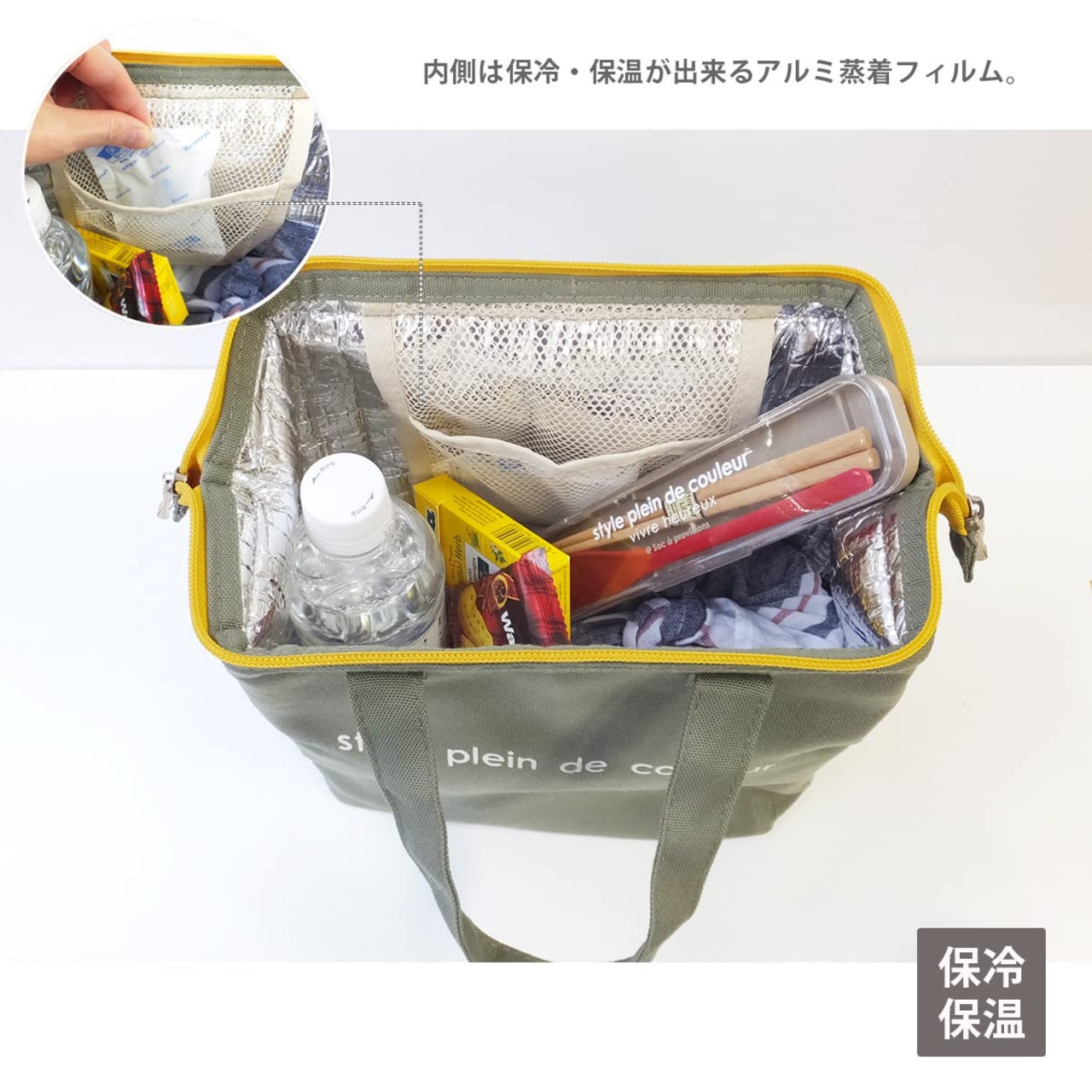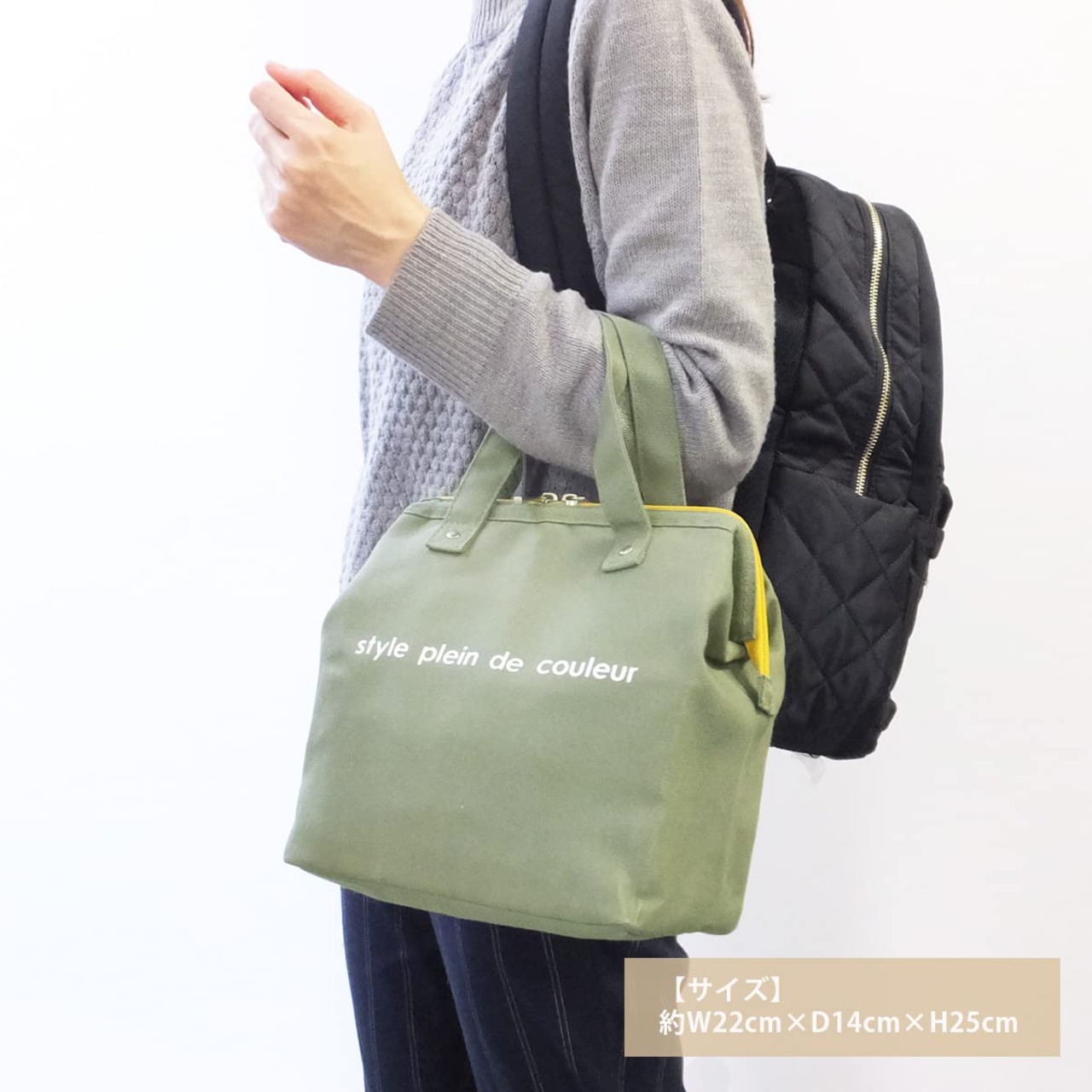 開き口はワイヤーが入っているがま口タイプなので、大きく開きます。丈夫な帆布風生地で自立するので、お弁当の出し入れがしやすくて、使いやすい保冷バックです。通勤や通学に、サブバッグとしても便利にお使いいただけます。