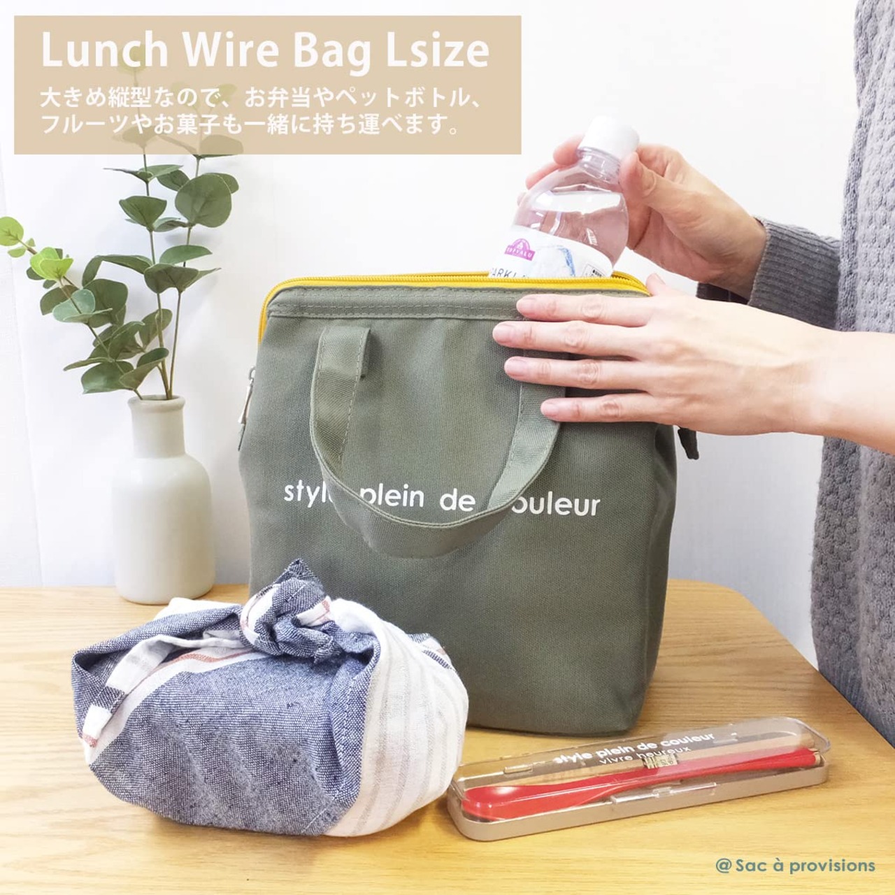 【大きめで使いやすい保冷ランチバッグ】大容量のがま口型のランチワイヤーバッグです。保冷保温仕様のクーラーバック。保冷剤を入れるのに便利な内ポケット付きです。外側にもポケット付き。開閉はダブルファスナー仕様。内側にボトル固定用のゴムバンド付き。
