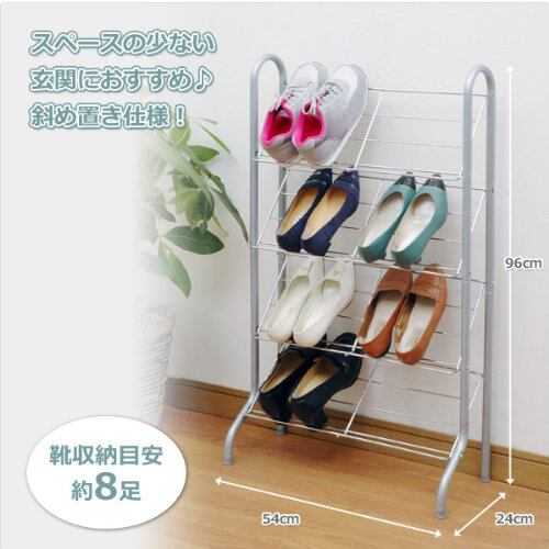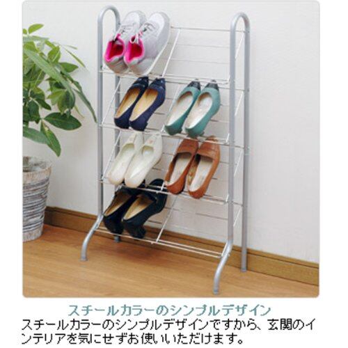 [山善] シューズラック 幅54×奥行24×高さ96cm 4段 スリム 8足 アジャスター付き シルバー SR-544(SG)