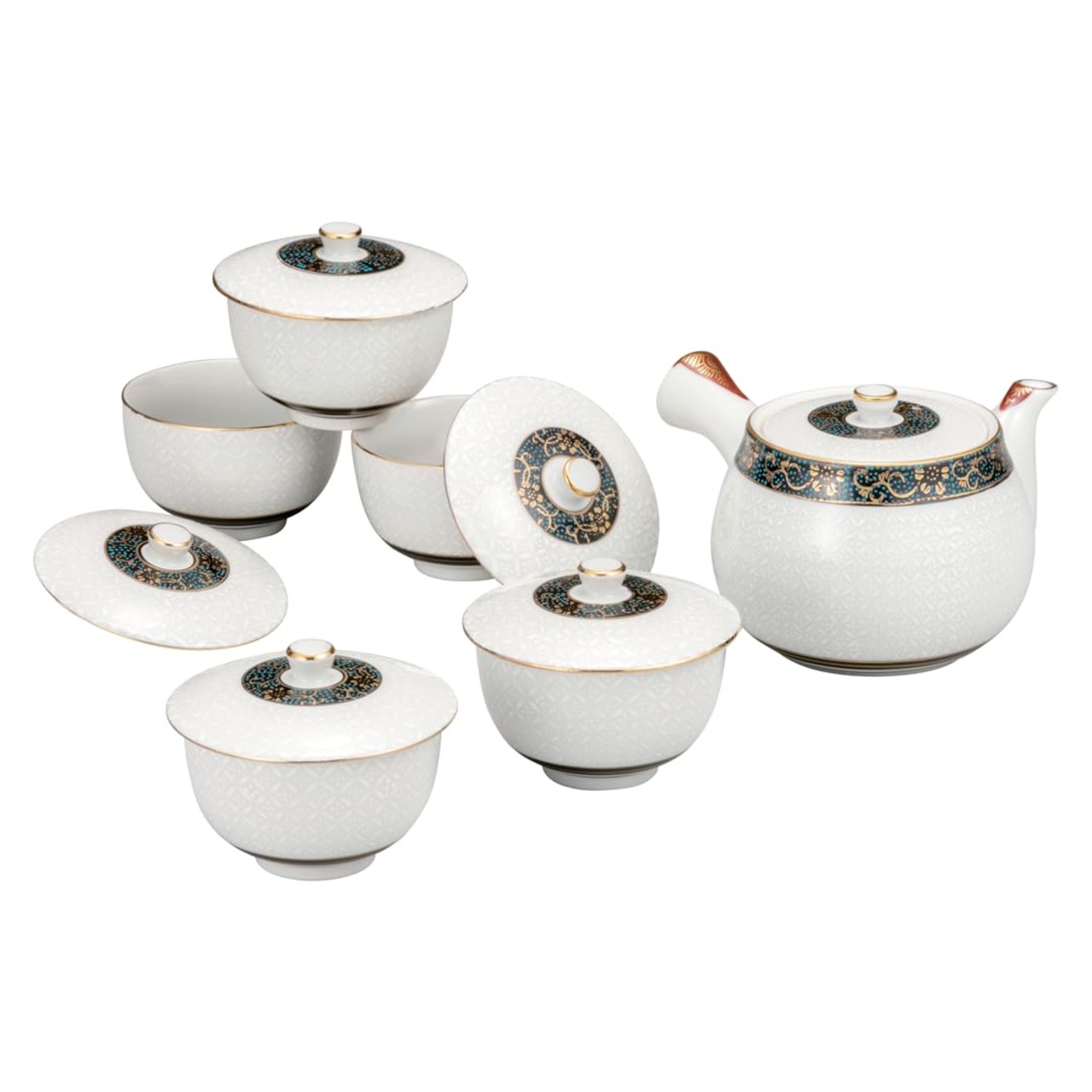 九谷焼いわたや 蓋付茶器・白七宝 K8-774