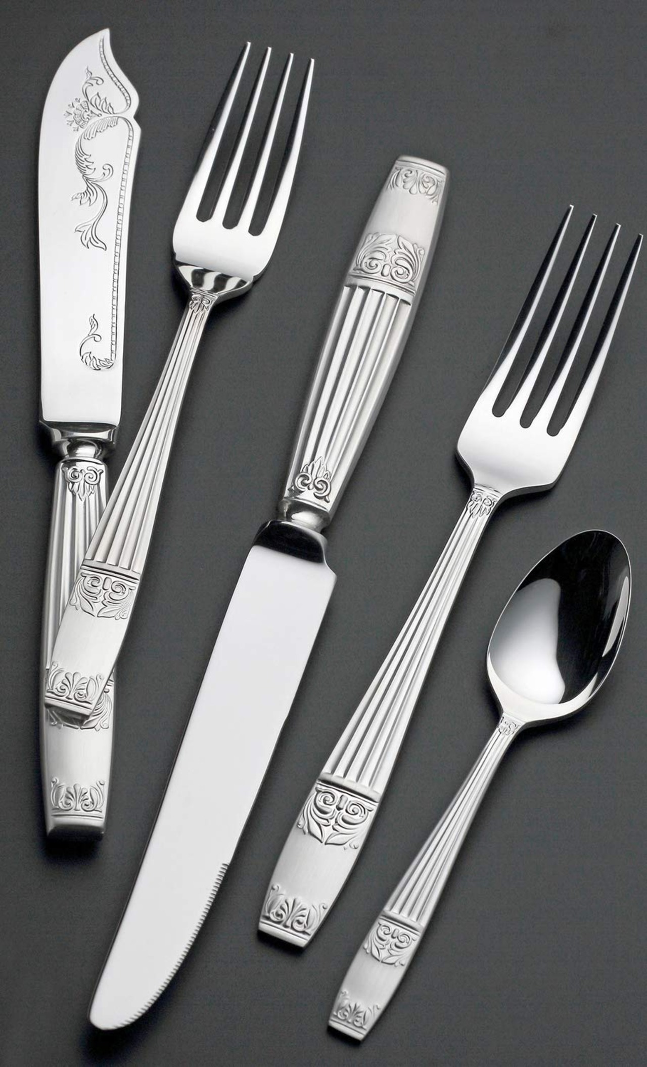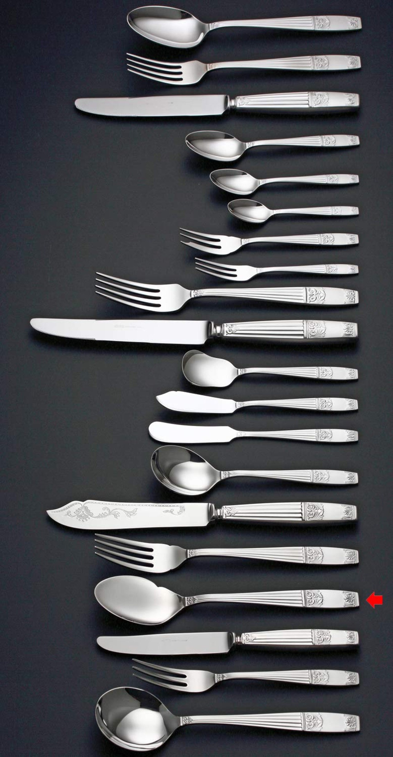 高級洋白銀器として長く愛されているロッキンガムの壮重感はそのままに、素材はステンレス製となっている