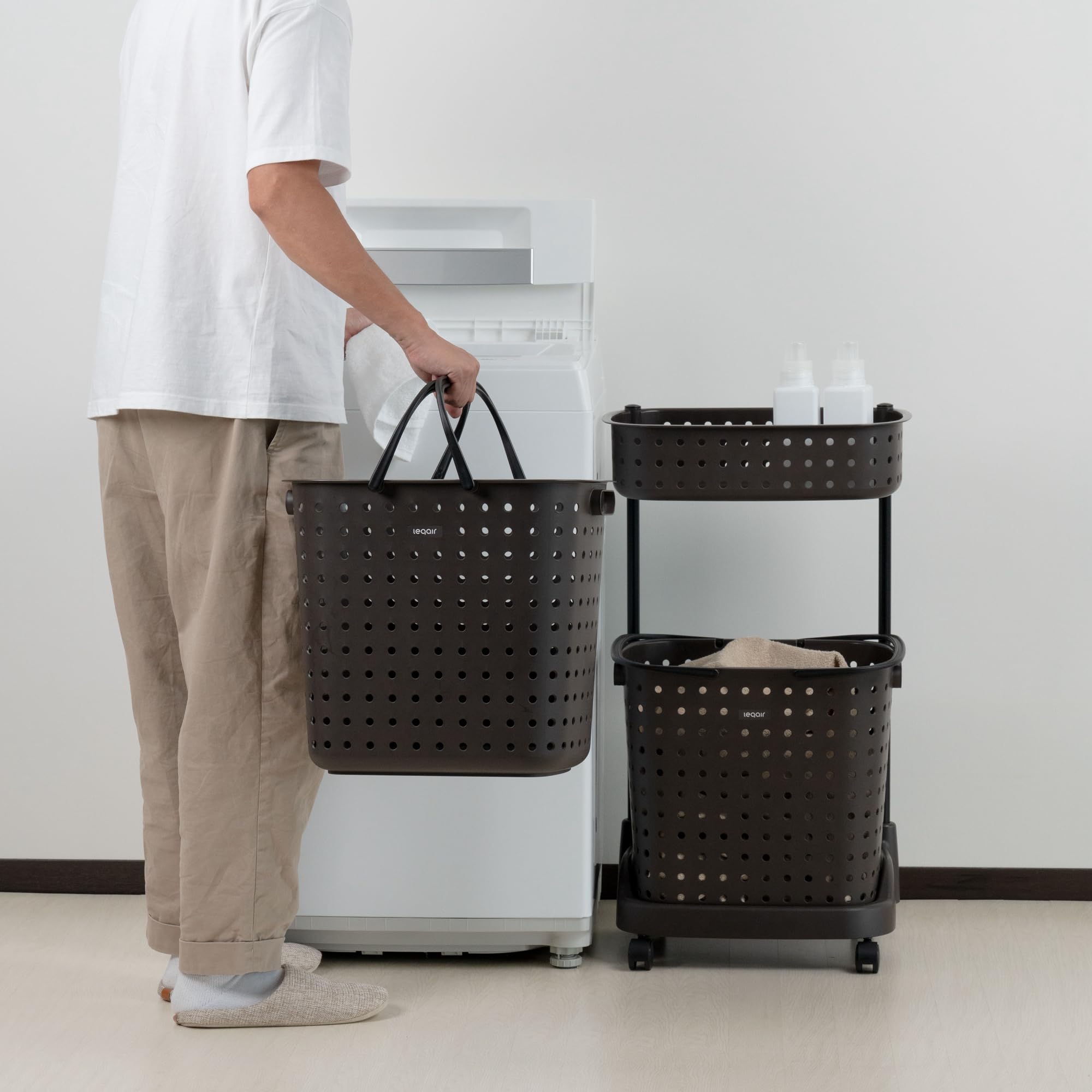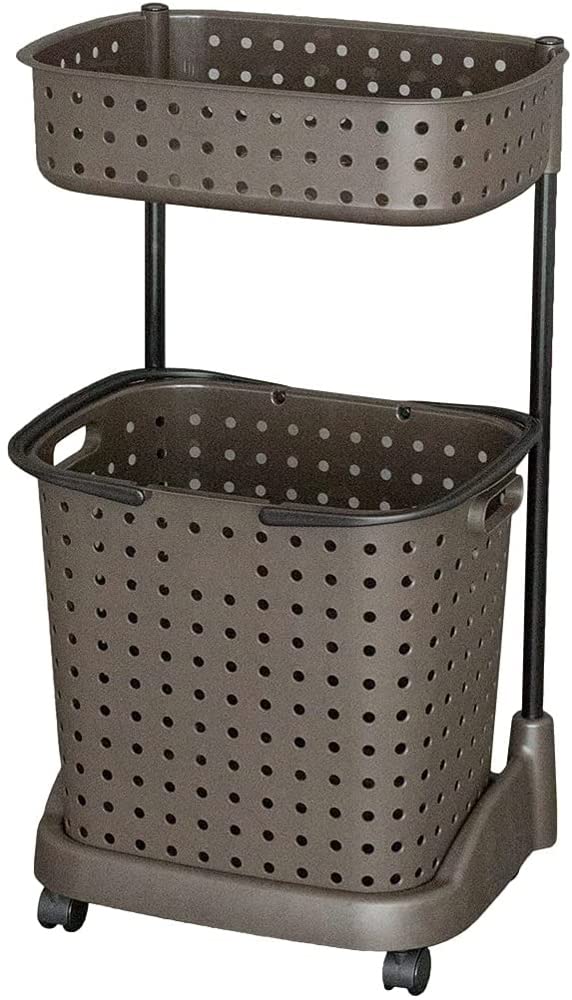JEJアステージ(JEJ Astage) 収納ラック レクエア ランドリーバスケット 2段 ダークブラウン 日本製 簡単組み立て 幅45×奥行35×高さ78.5cm