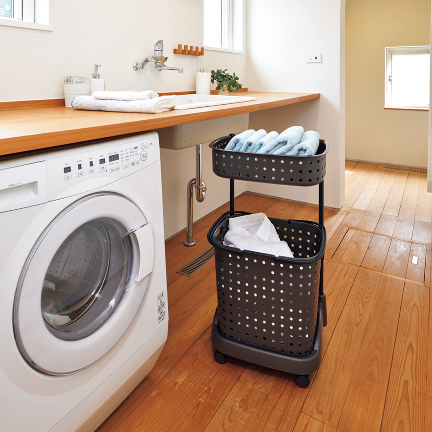 サイズ(重量)(約):製品/45×35×78.5cm (2,000g)、上カゴ/41.6×28.4×10.8cm、下カゴ/34.8×24.8×36.5cm
