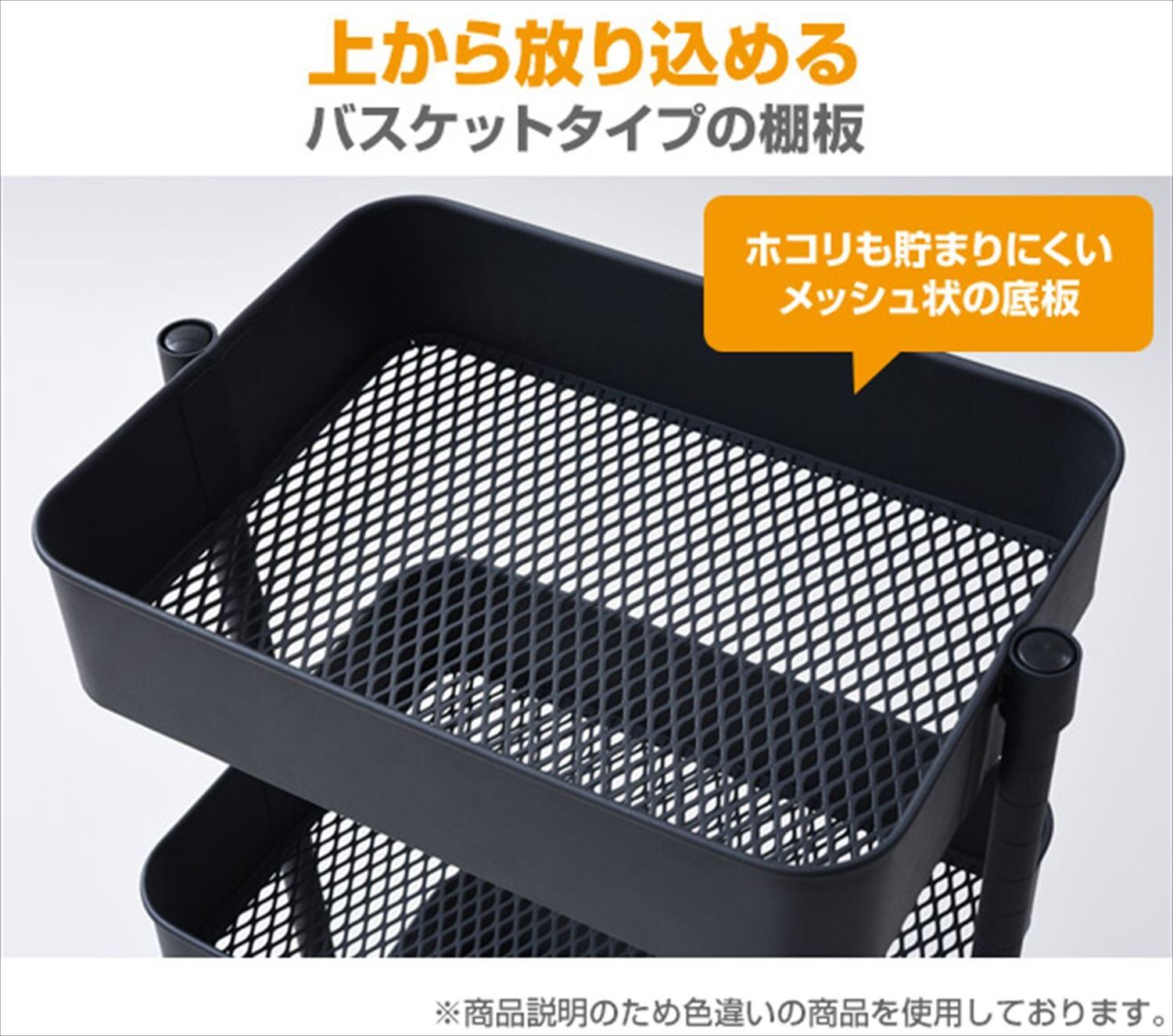 ●バスケットの底は野菜やタオルの収納にも合う通気性の良いメッシュ仕様
