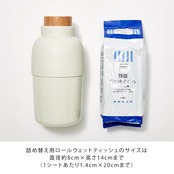 詰め替え用ロールウェットティッシュは、直径約8×高さ14cmまで(1シートあたり14×20cmまで)のものが使い勝手良くご利用いただけます。