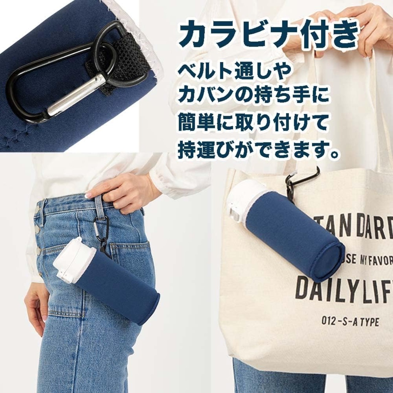 【特価セール】tone TC-26 スタンディングボトルカバー フック 350ml 水筒カバー ペットボトルカバー 手提げ 水筒 保温 ケースボトル用 ポーチ サーモス 象印 タイガー 魔法瓶 (ネイビー)