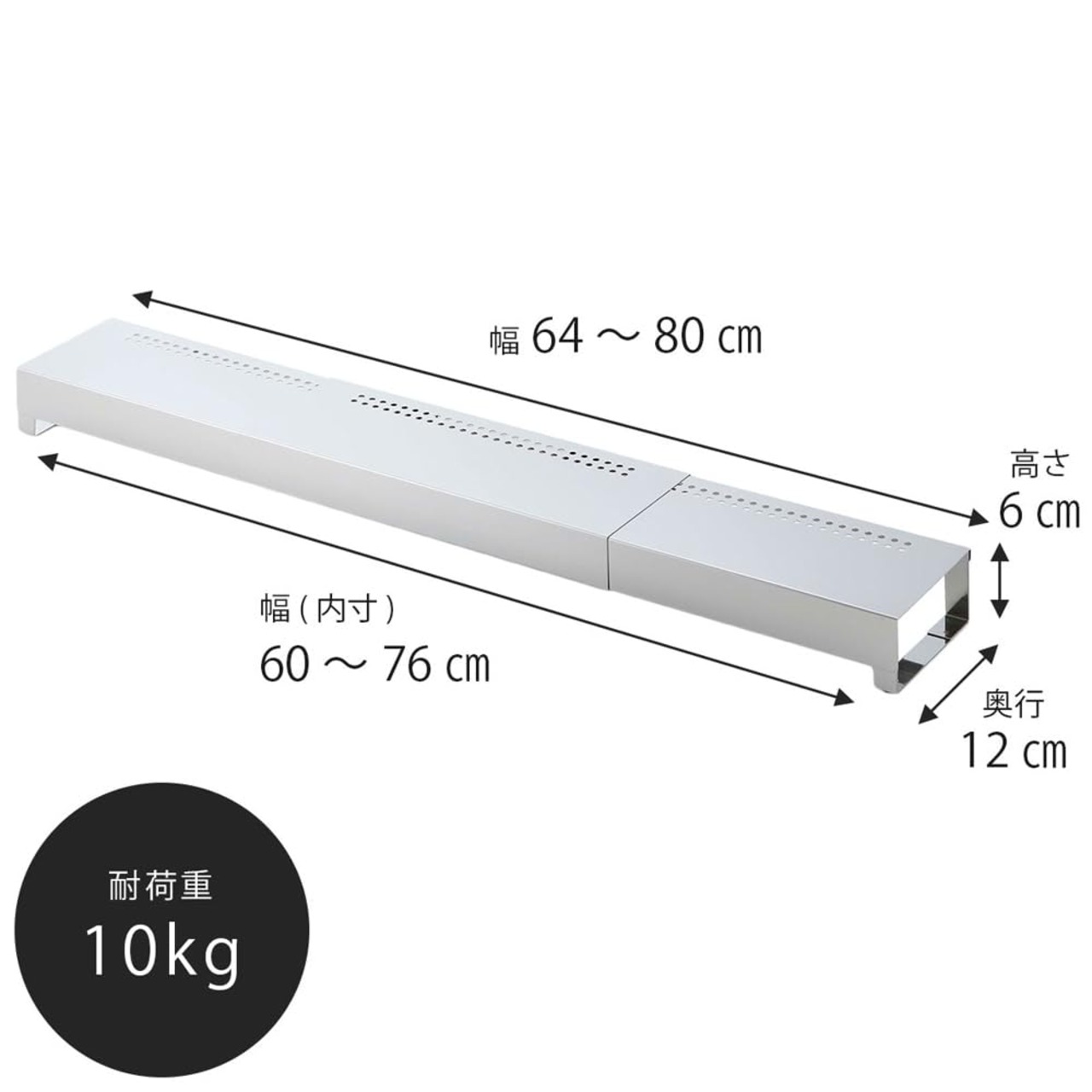 サイズ(約):幅64~80×奥行12×高さ6cm、内寸/幅60~76×高さ(手前)2・(奥)4.5cm