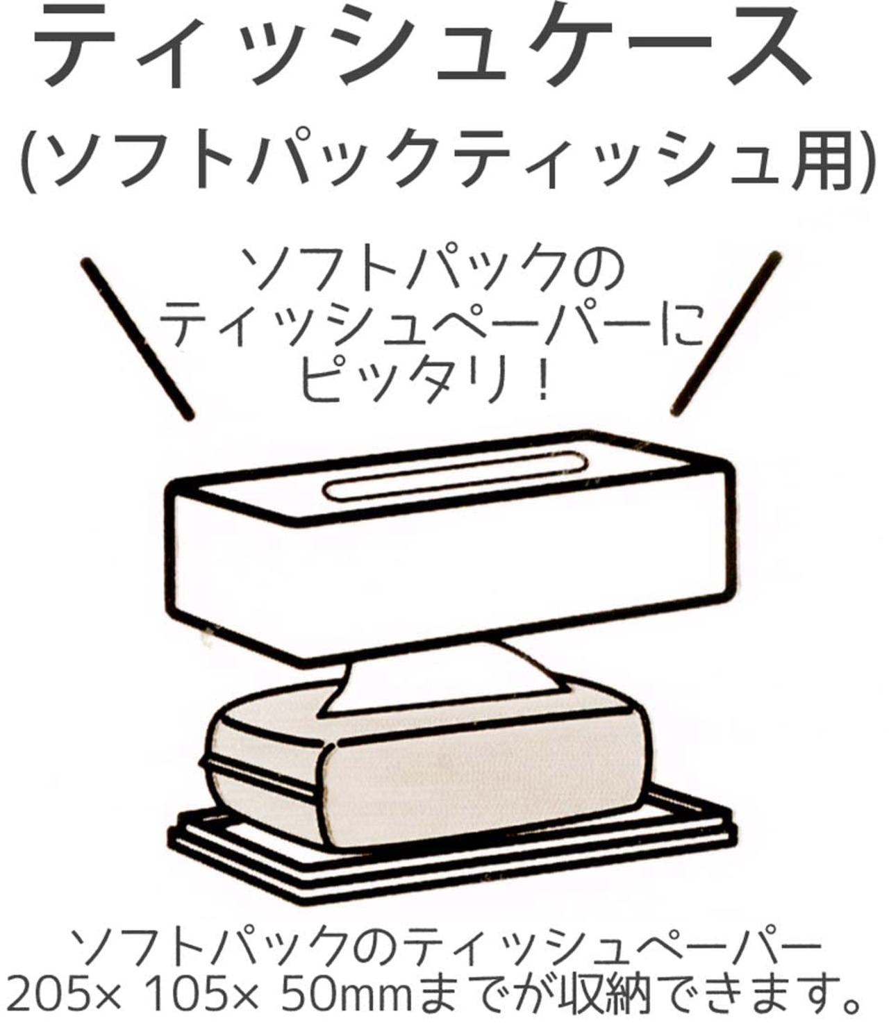 ソフトパックのティッシュペーパー約1個(205×105×50mmまで)が収納できる