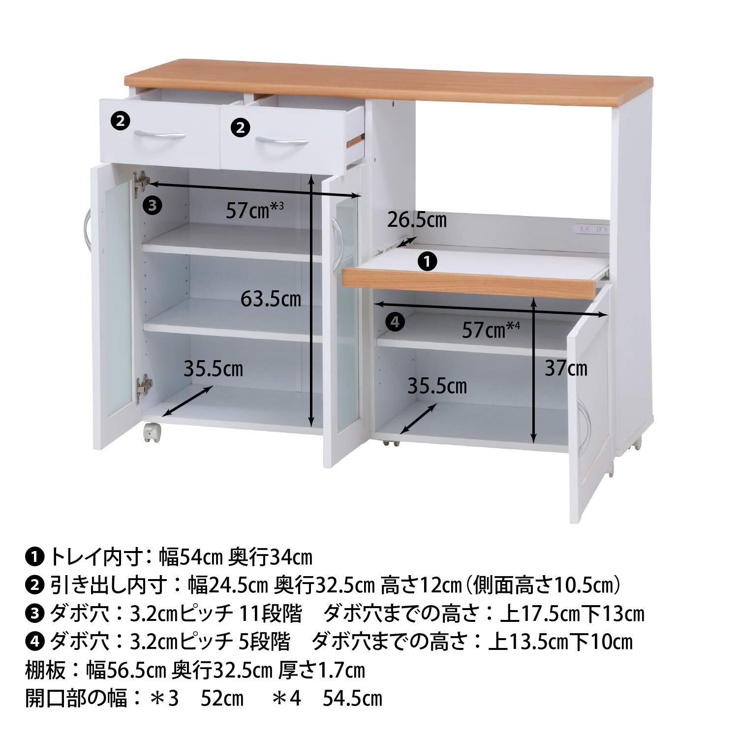 トレーは引きだすことができ、レンジや炊飯器の収納にピッタリです。