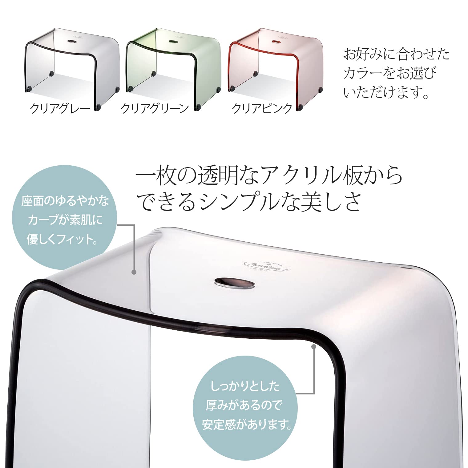 バスルームを広く開放的に見せてくれる、透明度の高いアクリル素材を使用したバスチェア