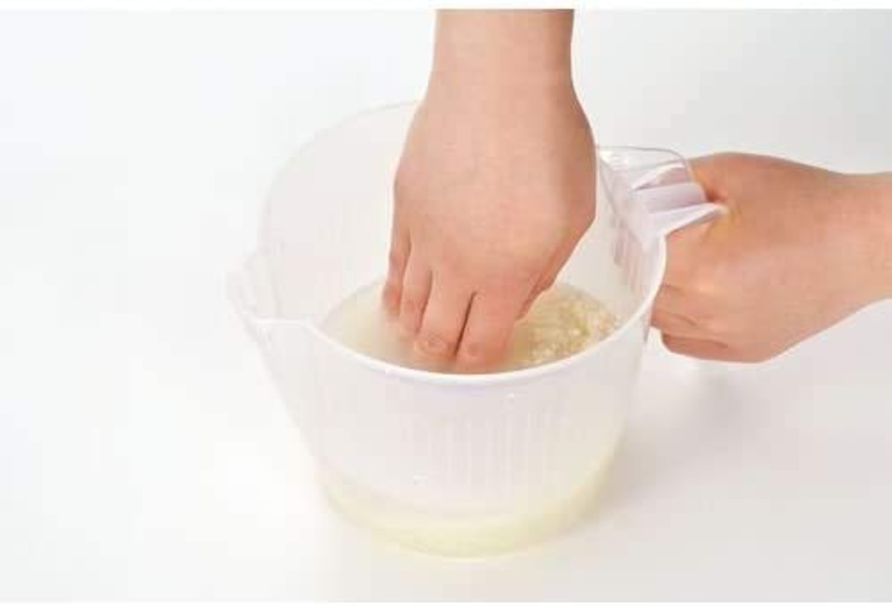 本体・フタ・バスケット・ツマミ:ポリプロピレン(耐熱温度110度)、ギア:ポリアセタル樹脂(耐熱温度120度)