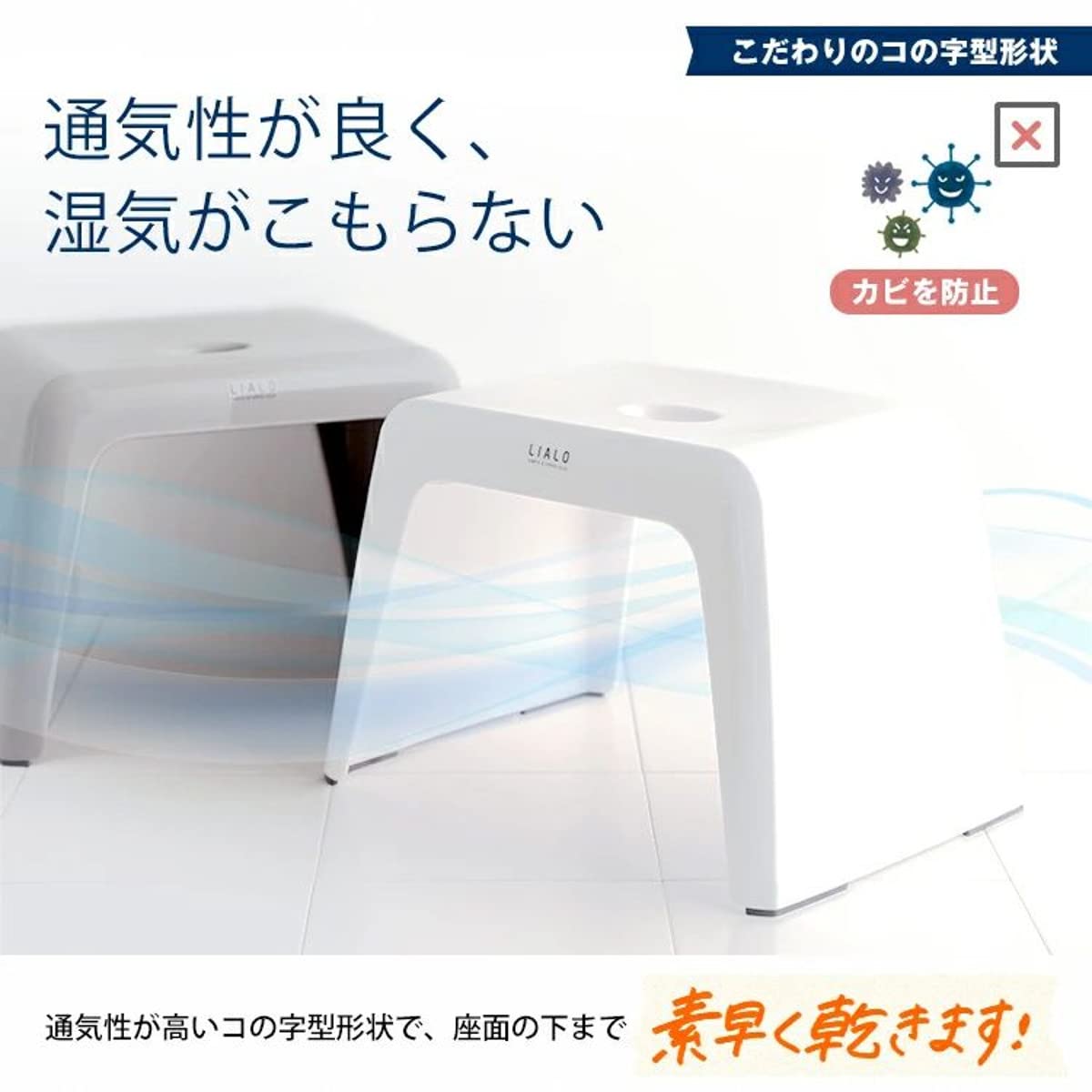 ●浴室空間や入浴スタイルに合わせて選べるサイズ&カラー●カウンター付浴室に最適の高さ30cm●お子様からご高齢の方まで、用途にあわせて選べる●コの字型なので湿気がこもりにくく乾きやすい●抗菌効果のある銀イオン配合。衛生的に使えます