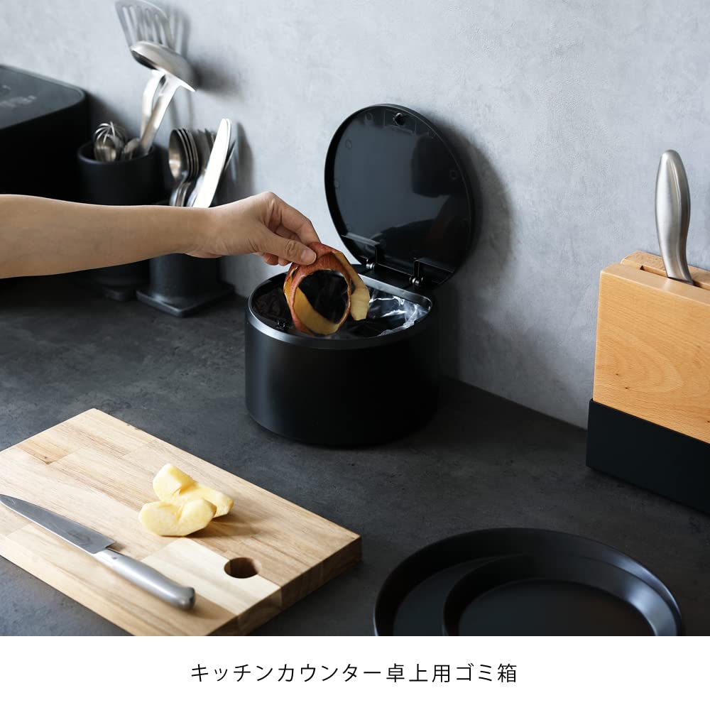 「ワンプッシュで臭いをフタする」 野菜くずなど、生ごみを捨てたい調理中のキッチンに最適。 フタ付きなので翌朝捨てるゴミやその臭いも一晩中目隠しできます。 当然の事、カバーをかぶせるだけで、中のポリ袋を簡単に隠せるオリジナル仕様。 ダイニングテーブルや書斎など、テーブルの上にゴミ箱が欲しい時にも、スッキリ便利にお使いいただけます。 デザイン設計では口をなるべく大きくごみが入りやすいようにサイジング、同時にコンパクトさを実現するために高さをなるべく低く抑え設計しました。 名前もゴミ箱では考えられない背の低さをキャラクターとしたところからflatと名付けました。