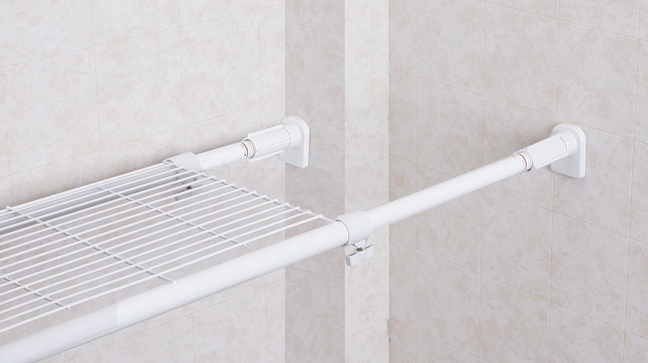 ピッチの細かいメッシュ棚で小物も載せやすいタイプの突っ張り棚です。