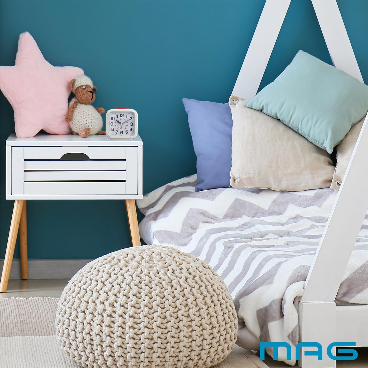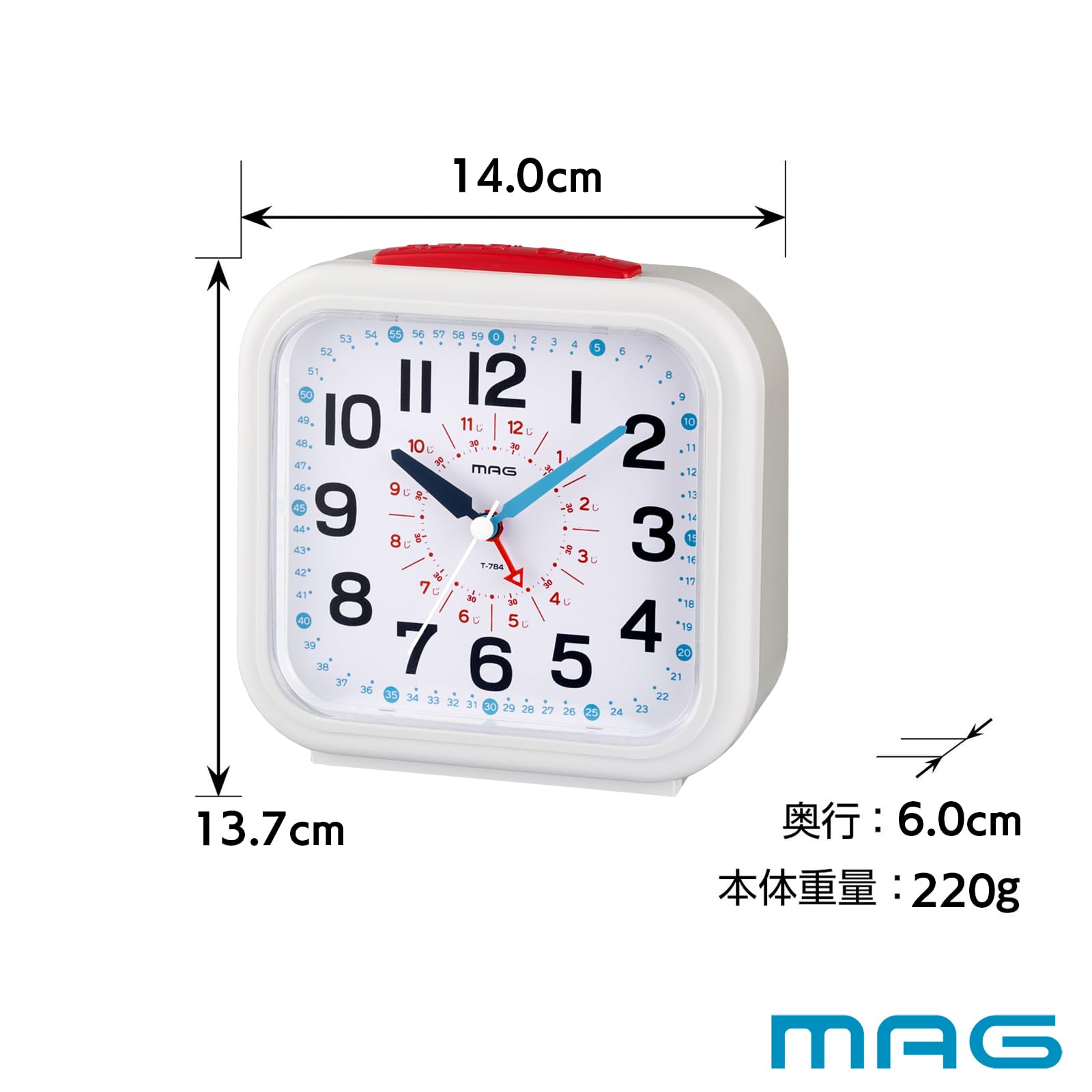 MAG(マグ) 知育時計 白 アナログ おきてよーめる 静音 連続秒針 スヌーズ機能 ライト付き T-784WH-Z